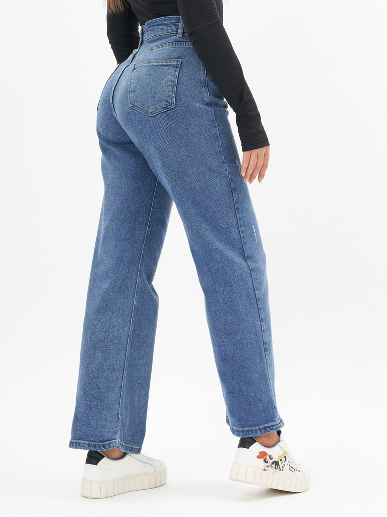 Больше картинок (информации) и таблица размеров на странице. Широкие женские джинсы клеш. Прямой крой, плотный деним, средняя посадка. Джинсы вместительные, имеют пять карманов. Маленький карман украшен выбитым кленовым листом. Модель очень шикарно смотрится с обувью на каблуках и базовыми водолазками. Джинсы - это незаменимая вещь в гардеробе современного человека. Материал: Хлопок;Ткань;ТекстильСостав: 97% хлопок 3% полиэстер. Пол: женский. Сезон: круглогодичный. Производитель: Турция