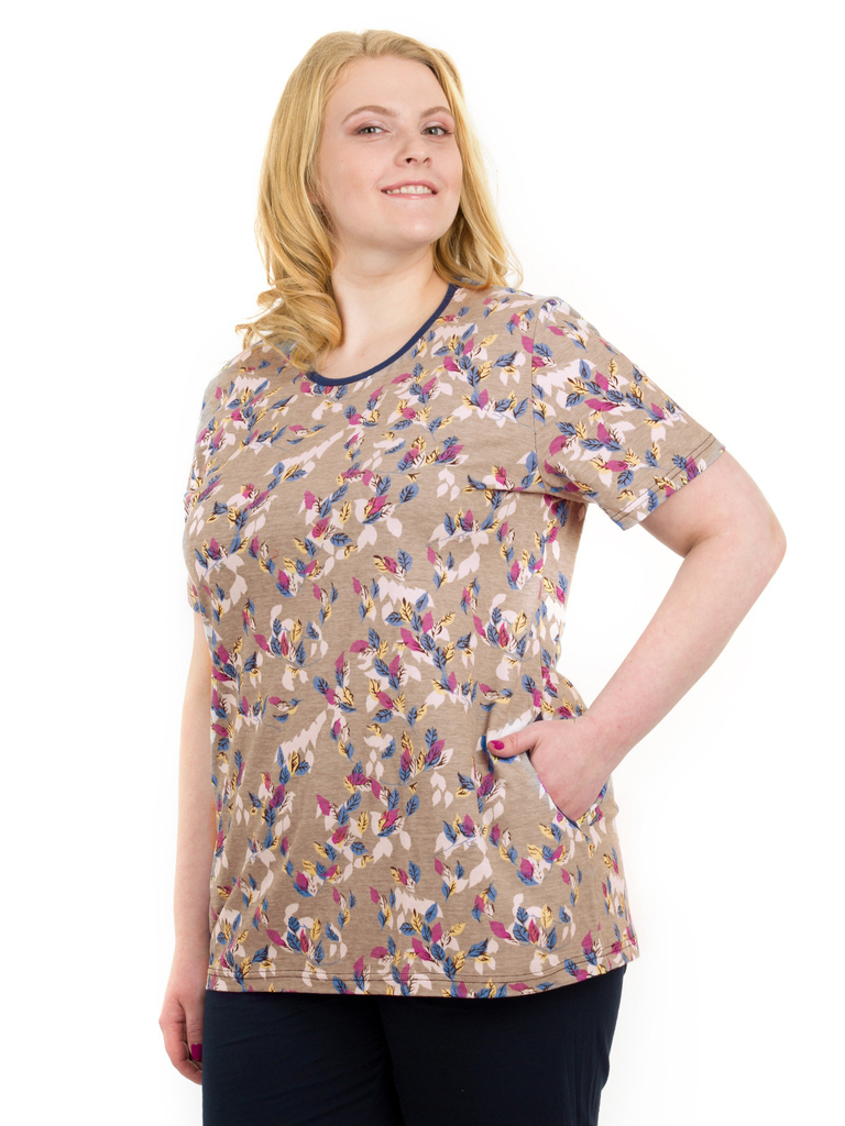Больше картинок (информации) и таблица размеров на странице. Комплект женский (туника/капри), цвет бежевый, с рисунком. Материал: 100% Хлопок. Пол: женский. Материал: хлопок. Производитель: Узбекистан