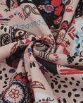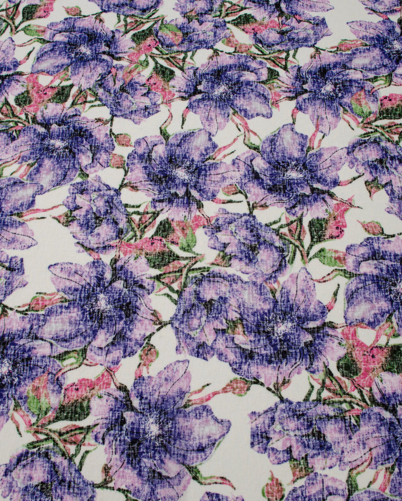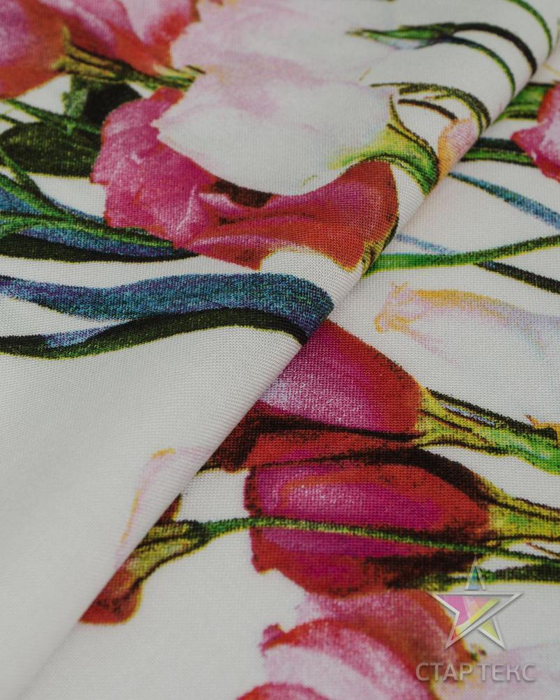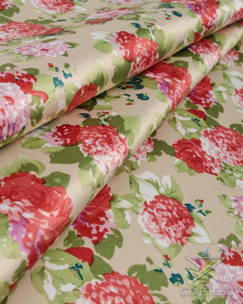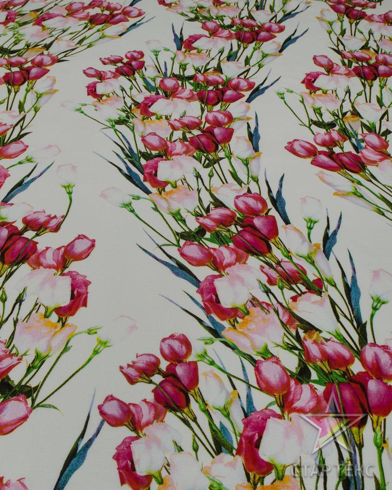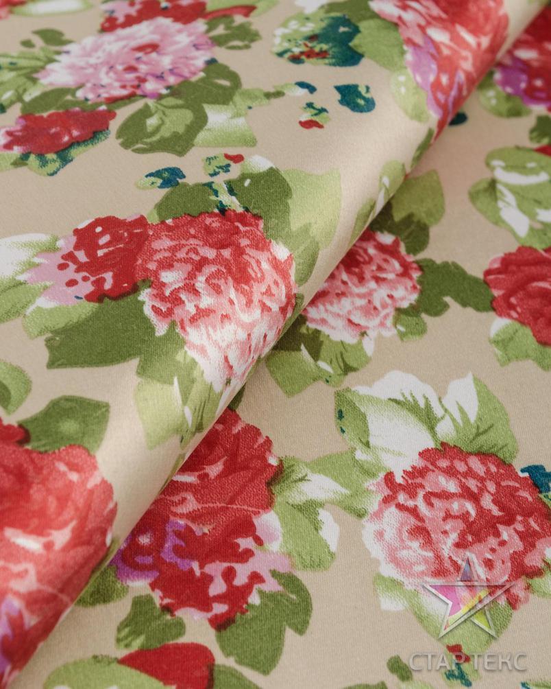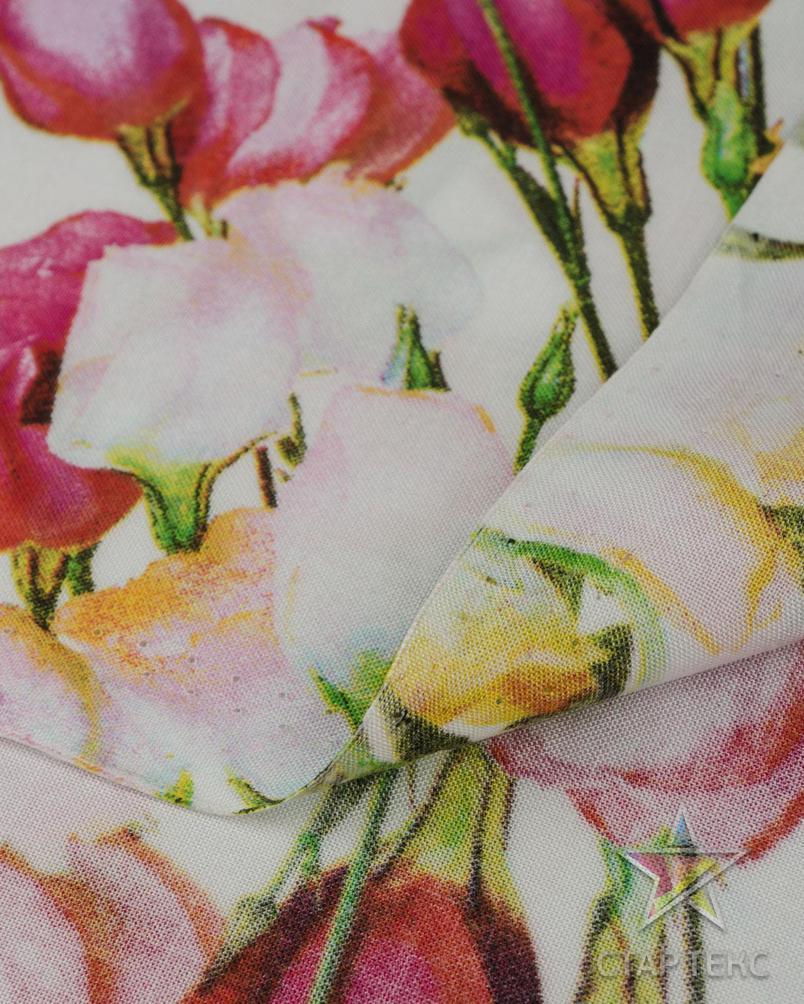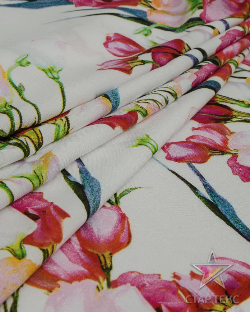 Тонкая легкая ткань с гладкой шелковистой поверхностью. На лицевой стороне полотна расположен цветочный принт. Материал мягкий, эластичный, хорошо драпируется. Данная ткань идеально подходит для пошив... Показать описаниеа летних платьев, блузок, легких юбок. Состав: 97% п/э, 3% эластан. Плотность 126 гр/м.пог. Ширина 150 см.