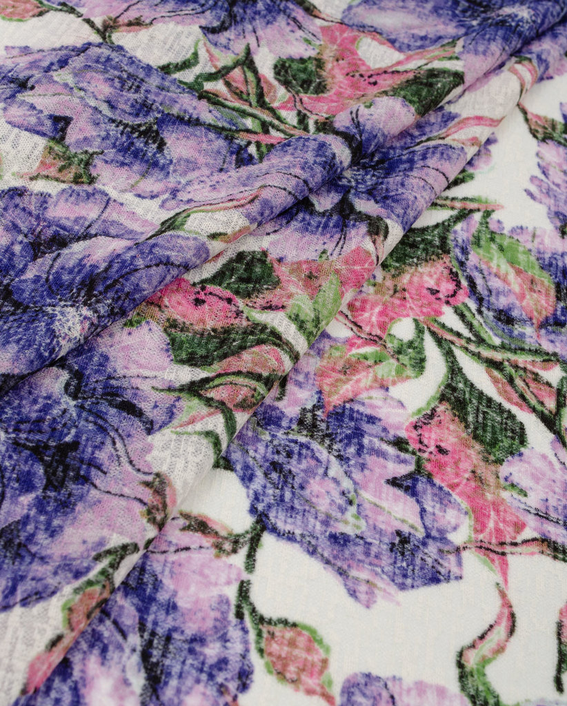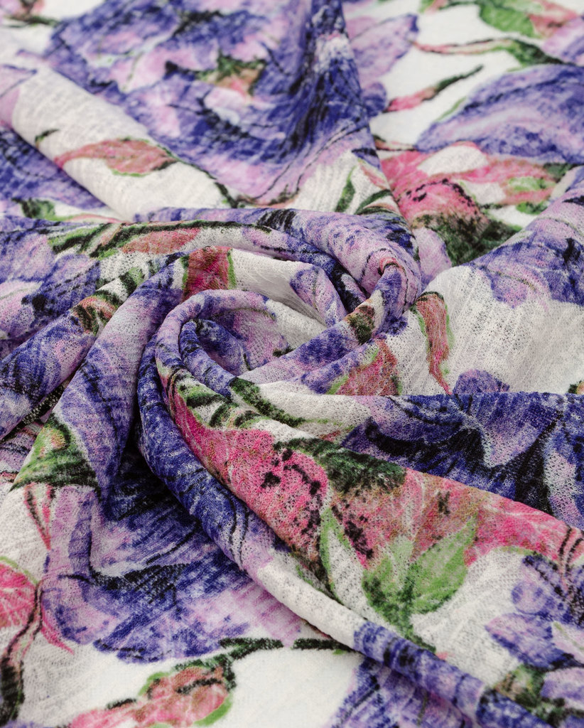 Мягкое и тонкое вязаное трикотажное с принтованной шероховатой поверхностью. Приятная на ощупь ткань обеспечивает ощущение комфорта. Вязаная структура ткани, окутает вас теплом в прохладный день. Прим... Показать описаниееняется в пошиве кофт, топов, платьев и другой летней одежды. Состав 100% п/э. Плотность 195 гр/м.пог. Ширина 150 см.