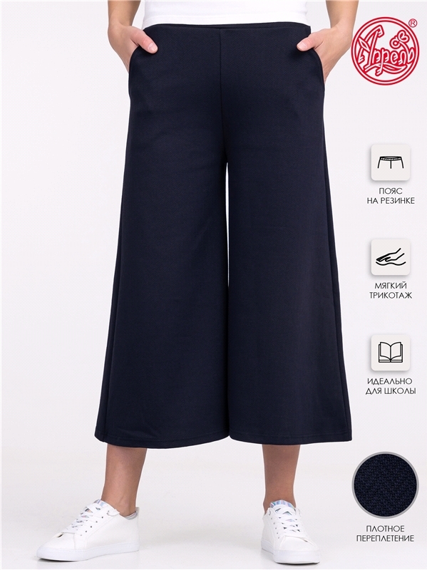 Состав: жаккард / хлопок 46% + ПЭ 54%. Кюлоты - укороченные широкие брюки ниже колена, выполнены из плотного полотна с рельефным рисунком, выполненным с применением жаккардового плетения. Изделие на ш... Показать описаниеироком эластичном поясе. Отличный вариант для школы и не только! Уход: только машинная стирка (руками не стирать!) при температуре 40 градусов, без предварительного замачивания.