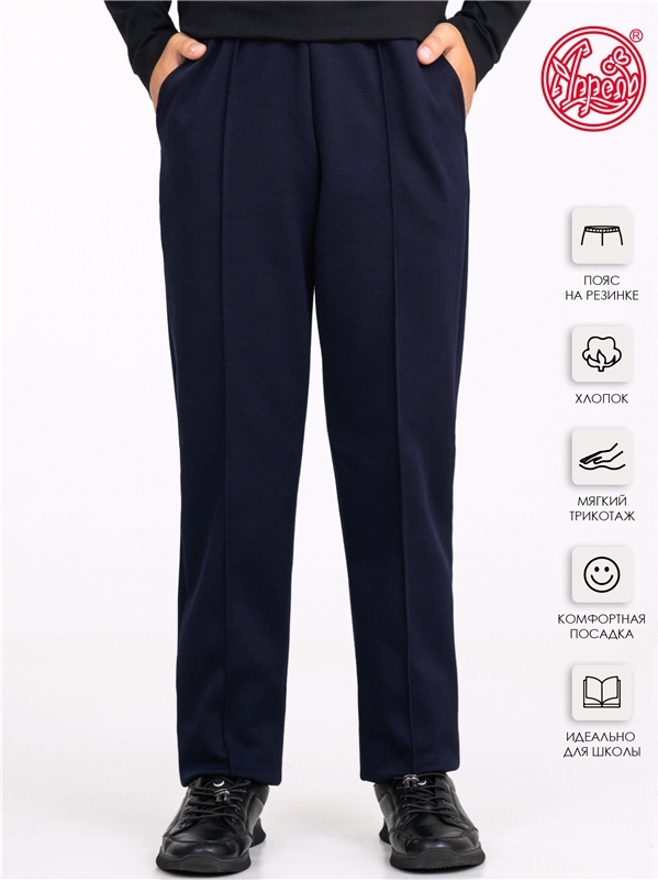 Состав: жаккард / хлопок 46% + ПЭ 54%. Брюки для мальчика выполнены из плотного полотна с рельефным рисунком, выполненным с применением жаккардового плетения. Изделие на эластичном поясе, имеет удобны... Показать описаниее карманы и декоративные отстрочки-стрелки. Отличный вариант для школы! Уход: только машинная стирка (руками не стирать!) при температуре 40 градусов, без предварительного замачивания.