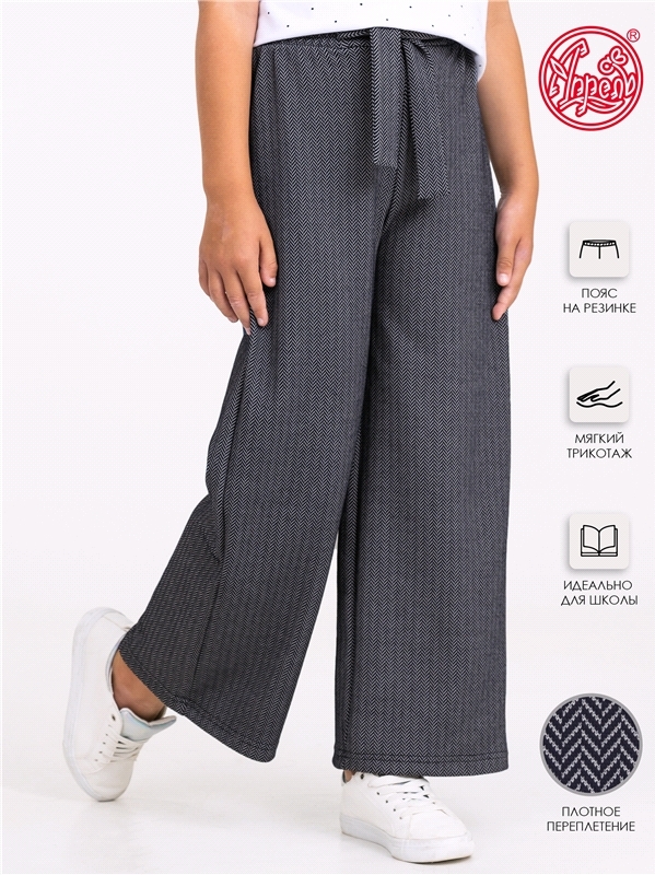 Состав: жаккард / хлопок 46% + ПЭ 54%. Брюки для девочки выполнены из плотного полотна с рельефным рисунком, выполненным с применением жаккардового плетения. Изделие на эластичном поясе и с удобными к... Показать описаниеармашками. Отличный вариант для школы! Уход: только машинная стирка (руками не стирать!) при температуре 40 градусов, без предварительного замачивания.