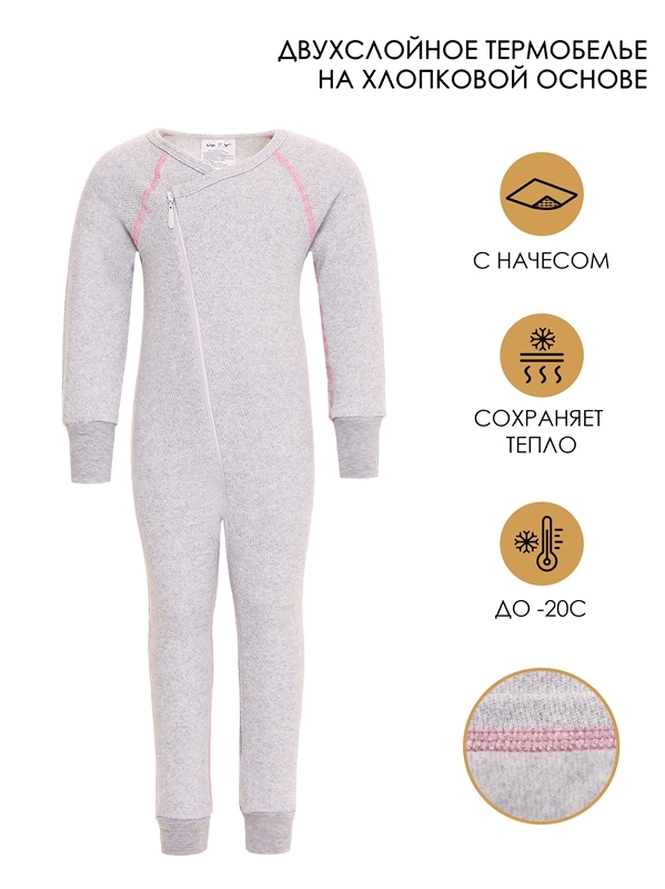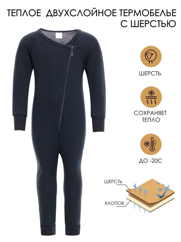 Состав: интерлок / хлопок 100%, ПАН 70% + шерсть 30%. Симпатичный комбинезон выполнен из двухслойного шерстяного полотна, обеспечивающего повышенную теплосберегаемость. Внутренний слой состоит из хлоп... Показать описаниека, легко впитывает влагу, не раздражая кожу. Внешний слой из шерсти с акрилом сохраняет тепло и помогает регулировать температуру тела. Эластичное полотно обеспечивает комфорт и свободу движений, обладает гипоаллергенными свойствами. Изделие на манжетах, застёгивается на молнию, имеет специальный крой для удобства ношения с подгузником. Подходит для ежедневного использования в качестве нательного белья в холодную погоду до -20 градусов при низкой и средней физической активности. Уход: ручная стирка при температуре до 40 градусов без предварительного замачивания.