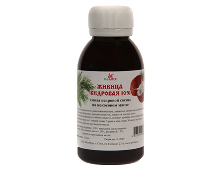 Оказывает восстановительное, ранозаживляющие, защитное, питательное действие на кожу. Используется при облысении, наличии перхоти, ломкости ногтей, волос. При приеме внутрь нормализует обмен веществ, ... Показать описаниеснижает уровень холестерина в крови. Принимается в пищу по 1 чайной ложке 3 раза в день через 30 минут после еды. Используется в качестве массажного масла Состав: Живица кедровая-10%, кокосовое масло-60%, льняное масло-30%.