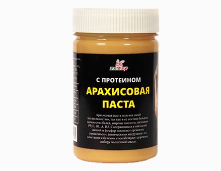 Арахисовая паста полезна своей питательностью, так как в ее составе большое количество белка, жирные кислоты, витамины рр, е, в1, а, в2. Содержащиеся в ней калия, магний и фосфор помогают организму сп... Показать описаниеравляться с физическими нагрузками, а в сочетании с белками способствует здоровому набору мышечной массы. Состав: поджаренный арахис - 74%, сывороточный протеин - 24%, антиоксидант (витамин е) - 2%.