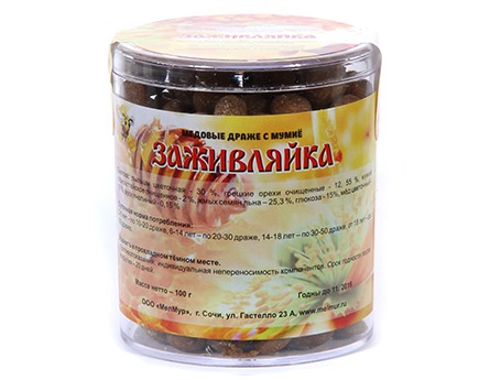 Состав: пыльца цветочная (пчелиная обножка), фруктоза, глюкоза, мёд цветочный, сухое молоко, витамин C, мумие горноалтайское. Суточная норма потребления: 3-5 лет – по 10-20 драже, 6-14 лет – по 20-30 ... Показать описаниедраже, 14-18 лет – по 30-50 драже, от 18 лет – до 60 драже. Мумиё стимулирует процессы регенерации клеток, ускоряет процессы заживления переломов и ран. Цветочная пыльца (пчелиная обножка) способствует повышению содержания гемоглобина в крови, улучшает работу пищеварительной системы, усиливает аппетит.