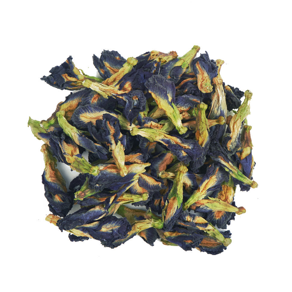 Тайский синий чай Анчан производят из высушенных бутонов Клитории Тройчатой (Clitoria ternatea), которую иначе называют синей тайской орхидеей. Цветы Анчана собираются рано утром вручную. При сборе бу... Показать описаниетоны срываются вместе с зелеными лепестками, затем их раскладывают на циновках, подвяливают, ферментируют и скручивают. В сухом виде: сине-зеленые скрученные бутоны с легким пряным сладким ароматом. В прогретой посуде: кисловато-терпкий аромат, с оттенками ореха. Из анчана получают Синюю Матчу, перемолов в пыль соцветия клитории. Все о синем чае, его составе и полезных свойствах, а так же о способах использования в кулинарии (вместе с рецептами) Вы можете узнать в нашей статье "Синий чай анчан". Настой прозрачный, глубокого синего цвета с легким травяным ароматом. Вкус приятный, сладковатый, но не навязчивый, с еле заметной кисловатой ноткой, хорошо освежает. Послевкусие кисловато-сладкое. Заваривать при температуре 85-90°C, из расчета 10-12 соцветий (2 ч.л.) на чайник 450 мл, в течение 3-8 мин.