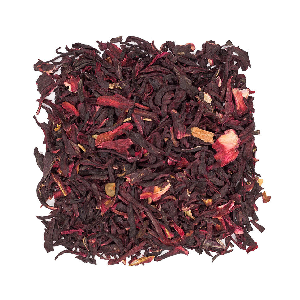 Натуральные цветы гибискуса крупной нарезки. Аромат кисло-сладкий. Настой густой, прозрачный, тёмно-малинового оттенка. Вкус кислый, вяжущий, с лёгкой сладостью. Резаный каркаде может быть прекрасной ... Показать описаниеосновой для купажа из фруктов и ягод. Также из него получается прекрасный самостоятельный напиток, освежающий и утоляющий жажду. Заваривают этот напиток обычно 2-3 минуты при температуре 90-100 °C, 7 г заварки (2-3 чайные ложки) на чайник (450-500 мл).