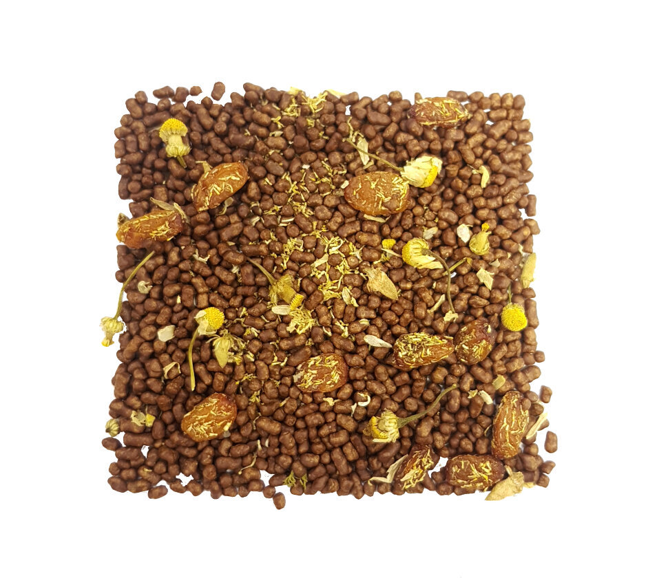 Гречишный чай Ку Цяо производится из светлых зёрен татарской гречихи, которая растер в горных районах Китая. Зерна гречихи после сбора подвергаются прожарке для усиления вкуса и аромата. В состав греч... Показать описаниеишного чая "Облепиха и Ромашка" помимо самого гречишного чая КуЦяо входят сушеные ягоды облепихи, сушеные соцветия ромашки и ароматизатор. В традиционной китайской медицине принято считать, что напиток Ку Цяо усиливает энергию Ци и способствует гармоничному течению мыслей. Современные исследования показывают, что этот напиток способен понижать сахар в крови и поддерживать иммунитет. В сухом виде — светлые твёрдые зёрнышки, соцветия ромашки и сушеные ягоды облепихи с лёгким и приятным ароматом ромашки и облепихи. При заваривании получается настой ярко-желтого цвета, в аромате которого выделяются ноты овсяного печенья и ромашкового чая, а также чувствуется облепиховая нотка. Вкус у напитка сладковатый и приятный, успокаивающий. Это действительно удачное сочетание пользы ромашкового и гречишного чая, дополненное легкой ноткой облепихи. Послевкусие легкое и нежное. Заваривать при температуре 95-98°C, 2 чайных ложки на чайник 450 мл, в течение 1-3 мин. Для проливного метода — 8 г заварки на гайвань или колбу типода, в течение 5-15 сек.