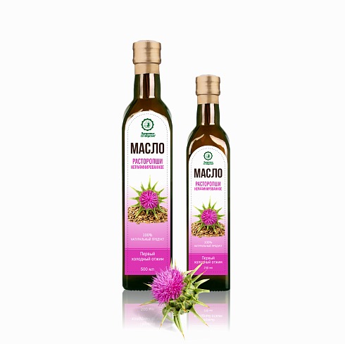 Масло расторопши имеет в своем составе драгоценный силимарин — вещество, которое защищает печень от токсинов и стимулирует ее регенерацию. В нем также содержится большое количество полиненасыщенных жи... Показать описаниерных кислот, способствующих правильному функционированию организма. Кроме этого, масло расторопши - богатейший источник каротиноидов (предшественников витамина А), витаминов Е, D, К и группы B, макро- и микроэлементов (калий, магний, кальций, марганец, железо, цинк, селен и др.) и биологически активных веществ . Натуральное растительное масло с приятным послевкусием. Содержит витамины В, Е, D, К, калий, медь, железо, магний, марганец, бор, цинк, хром, селен и флавоноиды. Регулярное употребление масла усиливает процессы регенерации на клеточном уровне, оказывает антиоксидантный эффект, защищает, восстанавливает и укрепляет клетки печени, нормализует пищеварительную систему, укрепляет иммунитет, способствует снижению массы тела, улучшает функционирование эндокринной, сердечно-сосудистой и репродуктивной систем. Идеально дополнит салат, кашу, горячее овощное блюдо.