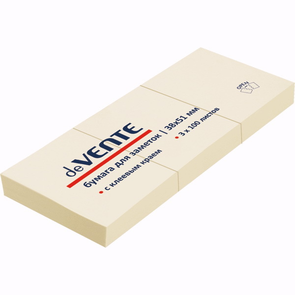 2010304 Клейкая бумага для заметок "deVENTE" 38x51 мм, 100 л., желтая, 3 шт. Non-branded