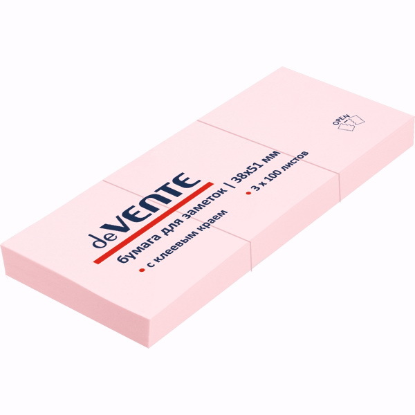 2010306 Клейкая бумага для заметок "deVENTE" 38x51 мм, 100 л., розовая, 3 шт. Non-branded