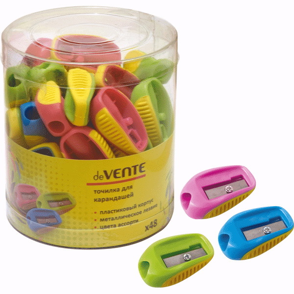 4071602 Точилка "deVENTE" 1 отв., без контейнера, пластмассовая, в тубе, ассорти. Non-branded Вопросы по товару