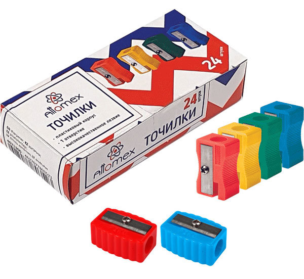 4071300 Точилка "Attomex" 1 отв.,без контейнера, пластмассовая, прямоугольная, ассорти. Non-branded (1) Вопросы по товару