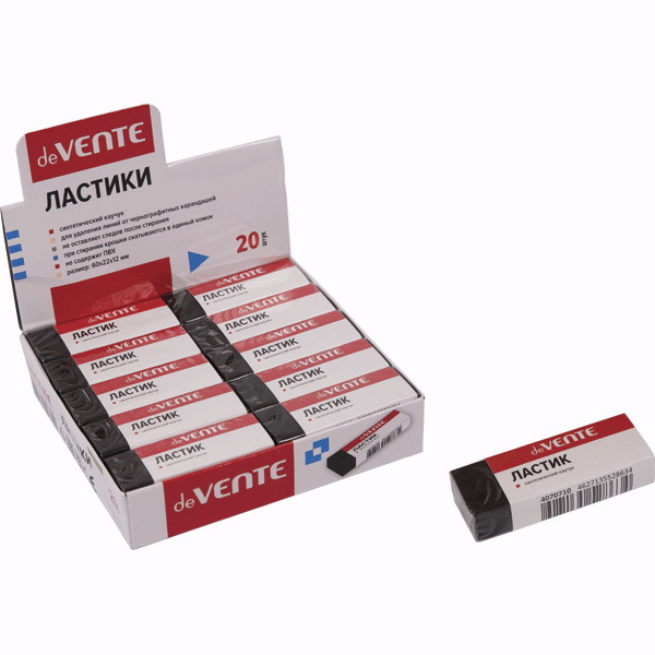 4070710 Ластик "deVENTE. Black"синтетический каучук, прямоугольный черный, 60x22x12 мм. Non-branded Вопросы по товару
