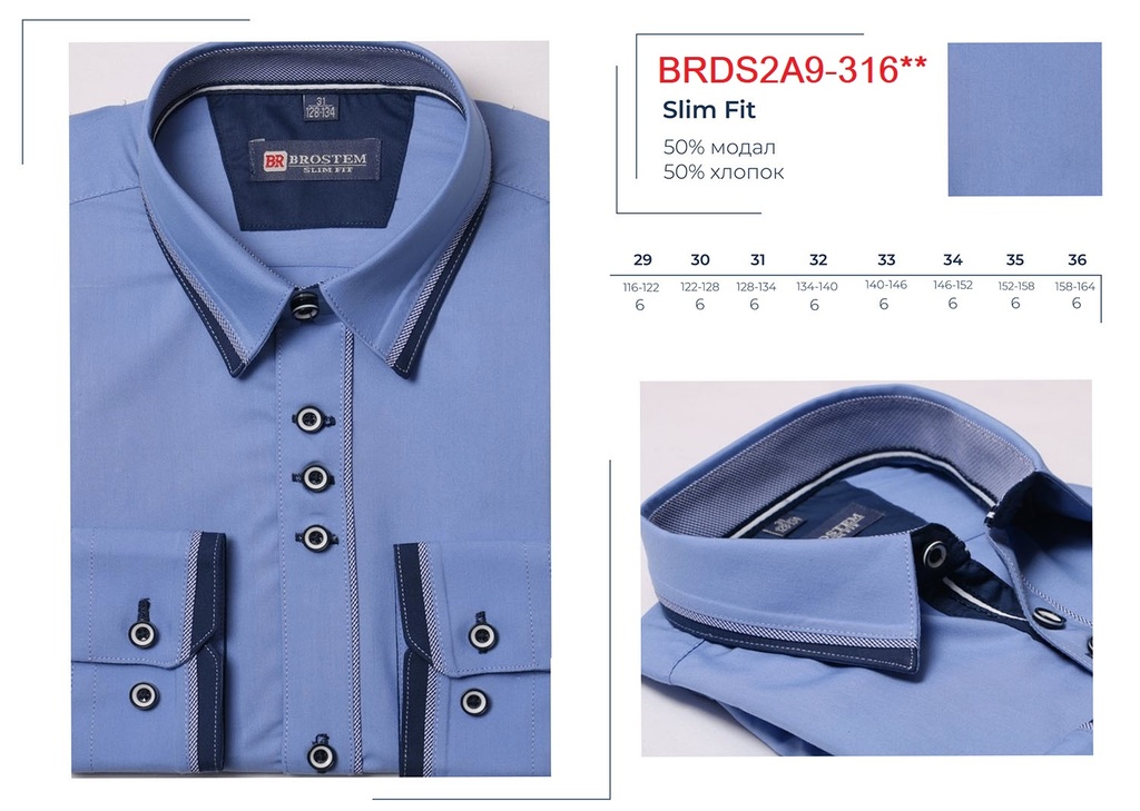 BRDS2A9-316d** (29-36) Сорочка детская притал. длин. рукав, BROSTEM
