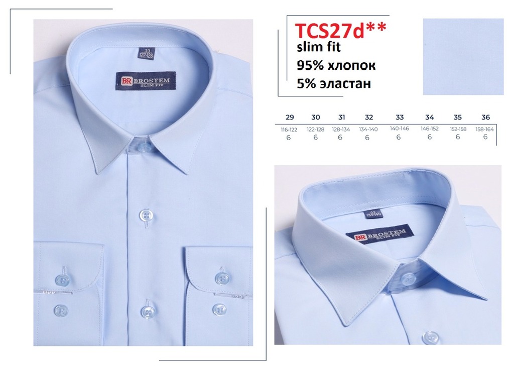 TC27d** Сорочка детская притал. длин. рукав, голубой, BROSTEM (2) Вопросы по товару