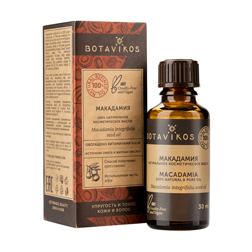 Сырьем для производства масла служат плоды тропического орешника макадамии, родиной которого является Австралия. К сегодняшней области произрастания дерева относятся Америка, Гавайи, Бразилия, Южная А... Показать описаниефрика. Химический состав включает жирные кислоты, преимущественно олеиновую, альмитолеиновую, пальмитиновую, калий, цинк, селен, медь, витамины группы В (В1, В2, В5, ниацин, фолат), Е, РР, минералы, протеины. ОЗНАКОМИТЬСЯ СО СПОСОБОМ ПРИМЕНЕНИЯ И ОТЗЫВАМИ МОЖНО ПО ЭТОЙ ССЫЛКЕ