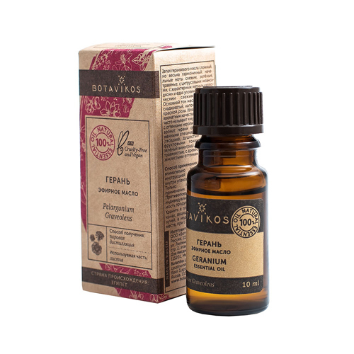 Эфирное масло герани получают не только из цветков, но и из всех остальных наземных зеленых частей растения, подвергая их перегонке с водяным паром. Запах гераниевого масла сложный, но весьма гармонич... Показать описаниеный: начальные ноты свежие, зелёные, травяные, с цитрусовыми нюансами, с характерным мятным "холодком" и едва уловимым металлическим свежим аспектом. Основной тон масла цветочный, сладковатый, напоминает аромат красной розы (благодаря своим ароматным качествам герань даже часто называют "мужской розой") с оттенками нероли, фрезии. Также аромат герани обладает выраженными специевыми аспектами (гвоздика, душистый перец) и фруктовыми тонами (груша, зелёный виноград). Базовые ноты травянистые, с древесными и чуть землистыми оттенками. Дизайн упаковки может отличаться, но на качественные характеристики товара это не влияет. ОЗНАКОМИТЬСЯ СО СПОСОБОМ ПРИМЕНЕНИЯ И ОТЗЫВАМИ МОЖНО ПО ЭТОЙ ССЫЛКЕ