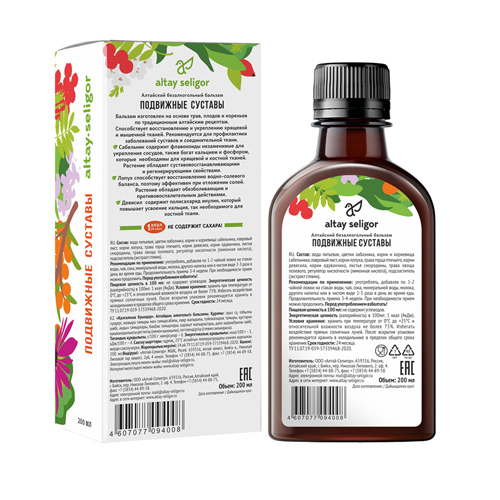 Бальзам без сахара "Подвижные суставы" способствует восстановлению и укреплению хрящевой и мышечной тканей. Рекомендуется для профилактики заболеваний суставов и соединительной ткани. Натуральный сост... Показать описаниеав и сбалансированная концентрация лекарственных трав делают бальзам безопасным для ежедневного применения. В широкой линейке разновидностей бальзамов без сахара каждый может выбрать свой незаменимый напиток, чтобы повысить качество жизни. Активные компоненты состава оказывают эффективное воздействие на организм, помогая достигнуть результата. Сабельник содержит флавоноиды незаменимые для укрепления сосудов, также богат кальцием и фосфором, которые необходимы для хрящевой и костной тканей. Растение обладает суставовосстанавливающим и регенерирующим свойствами. Лопух способствует восстановлению водно-солевого баланса, поэтому эффективен при отложении солей. Растение обладает обезболивающим и противовоспалительным действиями. Девясил содержит полисахарид - инулин, который повышает усвоение кальция, так необходимого для костной ткани. Используется как болеутоляющее средство при различных повреждениях мышц, связок, при воспаленных суставах. ОЗНАКОМИТЬСЯ СО СПОСОБОМ ПРИМЕНЕНИЯ И ОТЗЫВАМИ МОЖНО ПО ЭТОЙ ССЫЛКЕ