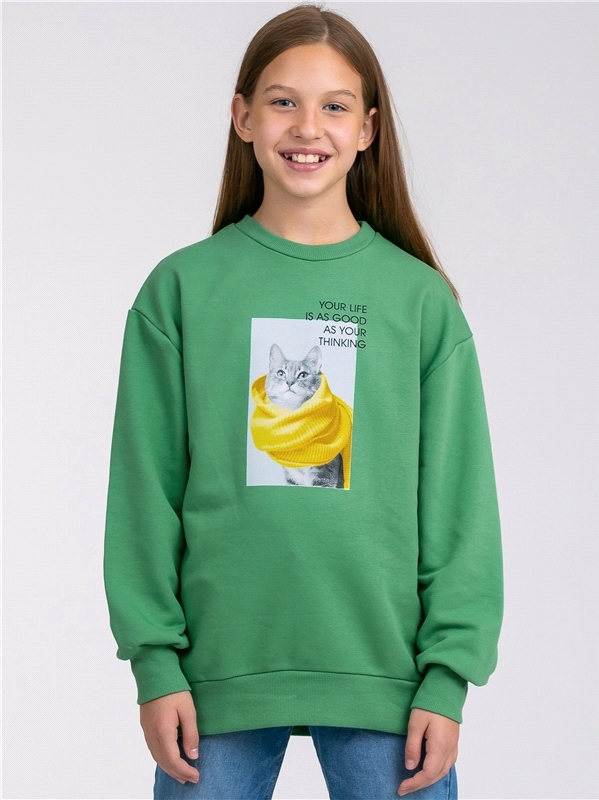 Состав: футер / хлопок 80% + ПЭ 20%. Стильный свитшот для девочки выполнен из футера - мягкого плотного хлопкового полотна. Круглый вырез горловины, длинный рукав со спущенным плечом на манжете. Украш... Показать описаниеен принтом. Уход: только машинная стирка (руками не стирать!) при температуре 40 градусов, без предварительного замачивания. Изделия с печатью и декором перед стиркой необходимо вывернуть на изнаночную сторону.