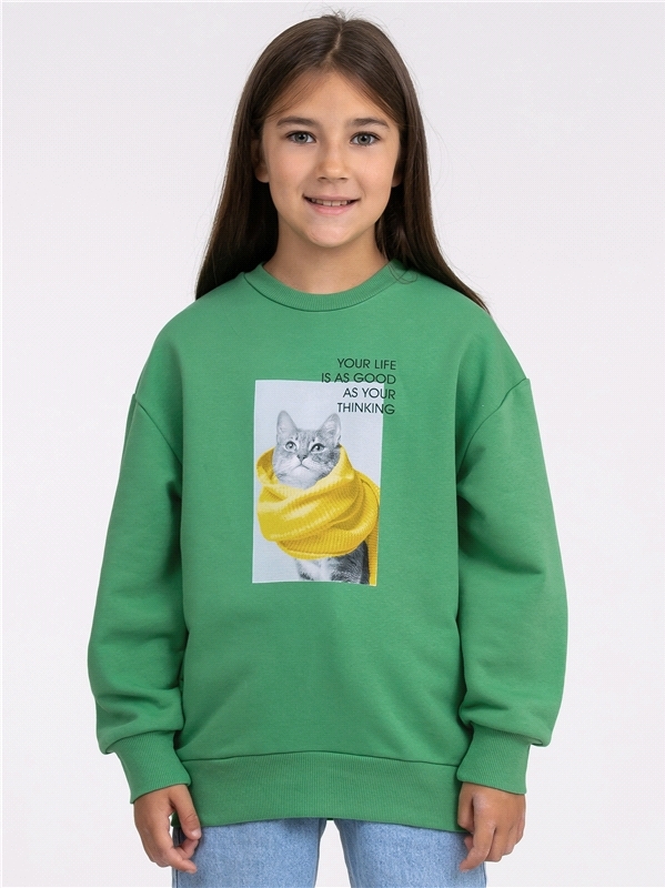 Состав: футер / хлопок 80% + ПЭ 20%. Стильный свитшот для девочки выполнен из футера - мягкого плотного хлопкового полотна. Круглый вырез горловины, длинный рукав со спущенным плечом на манжете. Украш... Показать описаниеен принтом. Уход: только машинная стирка (руками не стирать!) при температуре 40 градусов, без предварительного замачивания. Изделия с печатью и декором перед стиркой необходимо вывернуть на изнаночную сторону.