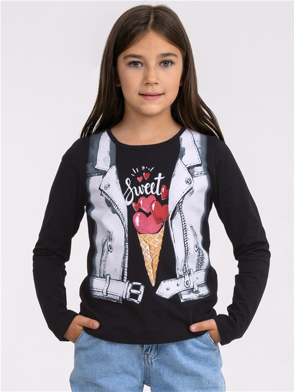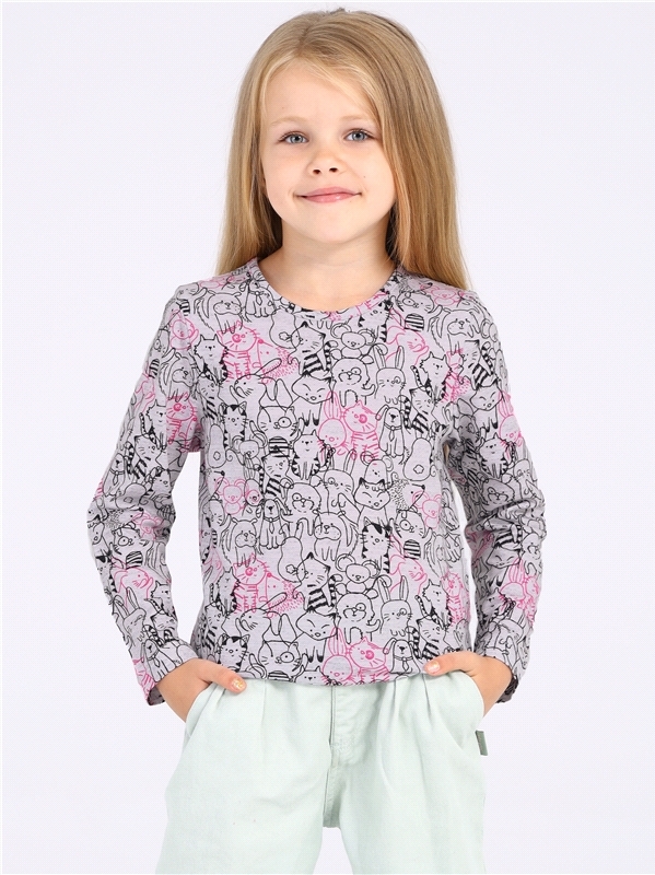 Состав: кулир / хлопок 100%. Лонгслив для девочки выполнен из тонкого хлопкового полотна. Изделие с длинными рукавами, украшено стильным принтом. Отличный выбор на каждый день! Уход: только машинная с... Показать описаниетирка (руками не стирать!) при температуре 40 градусов, без предварительного замачивания. Изделия с печатью и декором перед стиркой необходимо вывернуть на изнаночную сторону.