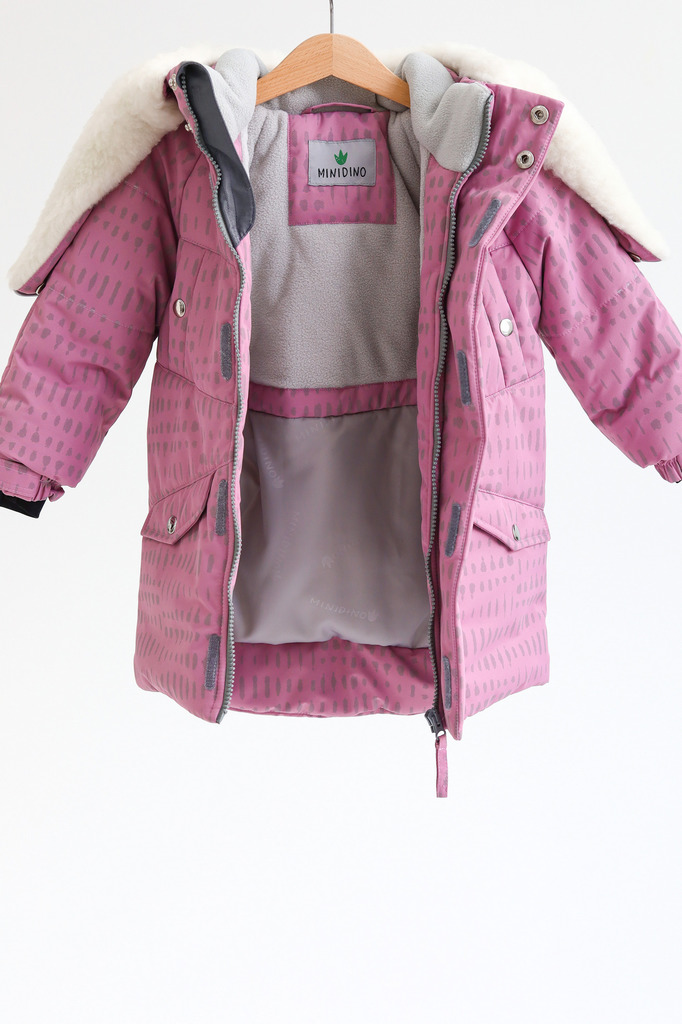 Перед вами высокотехнологичный комбинезон, словно надежный скафандр у космонавта! Команда конструкторов и дизайнеров MINIDINO вдохновилась темой космоса и создала уникальное изделие со световозвращающ... Показать описаниеим принтом, чтобы ребенок в темное время суток был ярче звезд! разработали оригинальный отстегивающийся капюшон, который легко трансформируется в милый меховой воротник. Усилили са е истирае е части у комбинезона и продумали идеальные цветовые сочетания. Пусть эта зима будет космической! - цвет помадка, цвет подкладки серый - состав 100% ПЭ - верх: курточная ткань LOKKER POINT TRU REFLECTIVE 5к/5к,100%полиэстер - утеплитель: Холстон Премиум 250г, 100%ПЭ - подкладка: флис 130г, 100%ПЭ по всей длине спинки - съемный капюшон с центральной молнией для создания мехового воротника (30% натуральная шерсть) - высокий воротник-стойка - лямки-резинки (дают возможность легко скинуть верхнюю часть в помещении) - смещение шагового шва на заднюю часть для предотвращения стирания - усиленное двухслойное колено - утяжка на талии - по низу изделия антискользящая силиконовая резина - пластрон, который защищает лицо ребёнка от зажатия молнией - внутренняя манжета с прорезью для пальца - регулируемая пата - карман на груди на металлических кнопках - внешняя ветрозащита замка на липучках и двух металлических кнопках на шее - световозвращающие элементы - температурный режим от -5С до -30-35С (с поддевой)
