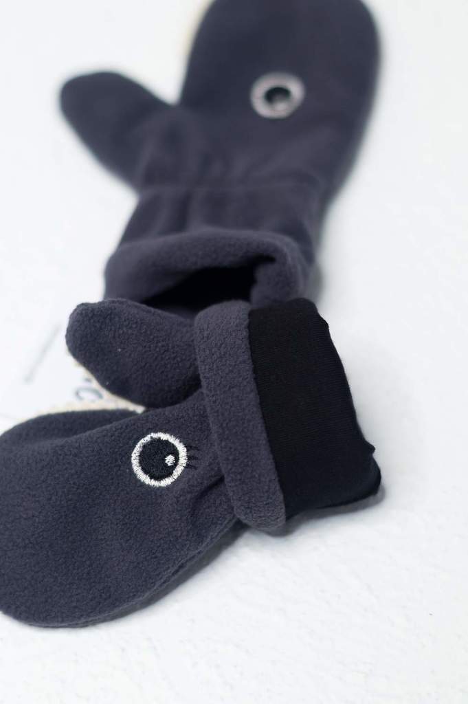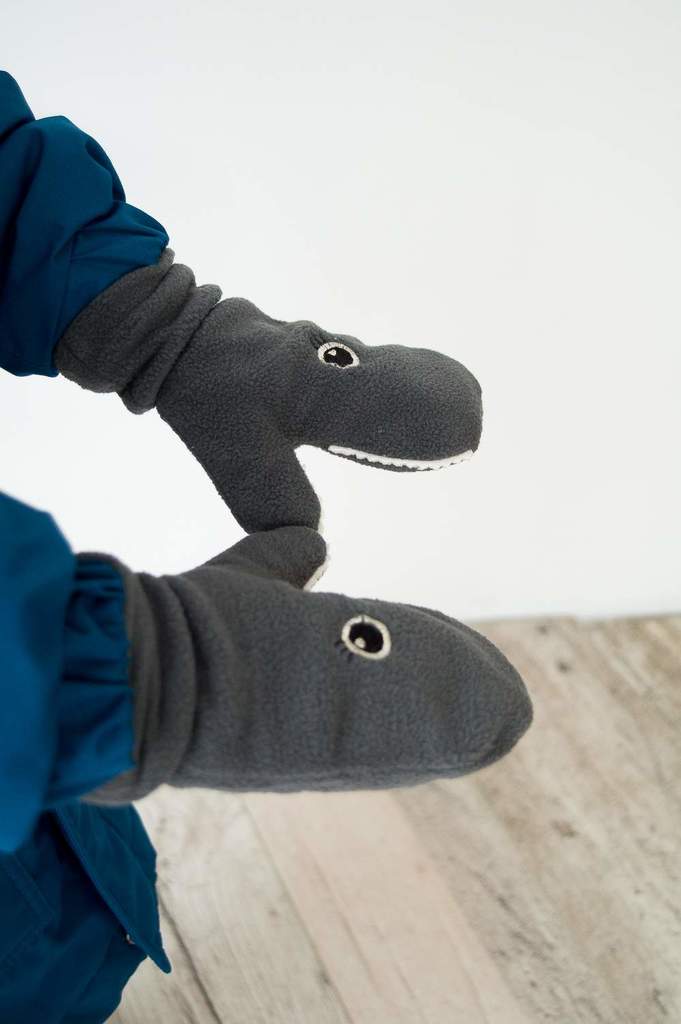 Самые милые в мире акулы на наших варежках не кусаются и морозу не позволяют одолеть холодом ручки малыша. - цвет серый - ткань верха флис 180 г, 100%ПЭ - подкладка 100% хб - мягкая резинка на запясть... Показать описаниее - декоративная вышивка