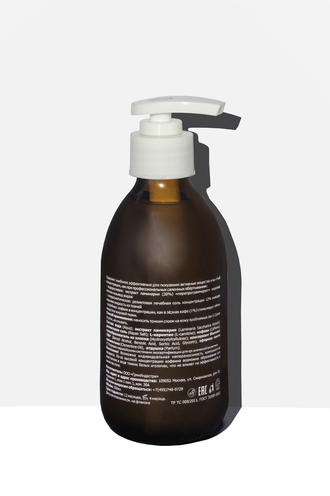 Грязевое обертывание – это профессиональное SPA на дому: - выравнивает скорость похудения проблемных зон (бедра, галифе, живот) и хорошо кровоснабжаемых зон (лицо, грудь), - эффективно выводит лишнюю ... Показать описаниежидкость из подкожного жира, уменьшая целлюлитные неровности и объемы, - двойной термоэффект: разогрев от камфоры (из камфорного лавра) и охлаждение от альфа-пинена (из сосновой живицы), - комфортно переносится, не содержит перца (капсаицина), - усиливает эффект последующих процедур. Активные компоненты: (Pinus Silvestris Essential Oil) Альфа-пинен из сосновой живицы; (Cinnamomum Camphora) Камфора из камфорного лавра Научно доказанная эффективность: (Pinus Silvestris Essential Oil). Альфа-пинен из сосновой живицы – один из лучших компонентов для улучшения микроциркуляции в подкожной клетчатке проблемных зон. Если жгучий перец просто раздражает терморецепторы, то альфа-пинен вызывает открытие капилляров, напрямую действуя на прекапиллярные сфинктеры. (Cinnamomum Camphora) Камфора из камфорного лавра – прекрасное средство при синяках и для снятия усталости ног. Усиливает эффект альфа-пинена на микроциркуляцию. Способ применения: Нанести слоем в 1 мм на сухую кожу проблемных зон, обернуть пищевой пленкой, надеть сверху теплые штаны или обернуть махровым полотенцем. Оставить для воздействия на 30 – 40 минут, затем смыть водой и нанести крем. Рекомендуем 2-3 раза в неделю. Важно! Не чаще, чем через день. Условия хранения: 0-25 С Срок хранения 12 месяцев, после вскрытия 3 месяца Подходит для веганов. Состав: вода (Aqua); белая глина (Kaolin); реликтовая соль рапа (Rapan Salt); глицерин (Glycerin); гелеобразователь из хлопка (Cellulose Gum), эфирное масло сосны (Pinus silvestris Essential oil); альфа-пинен натуральный (Alpha-pinenes); кофеин (Caffeine); экстракт бурых морских водорослей (Carrageenan), камфора натрульная (Camphora); L-карнитин (L-Carnitine); камедь бобов рожкового дерева (Ceratonia Siliqua Gum), сахароза (Sucrose); сорбитол (Sorbitol); консервант Nipaguard SCE* (Sorbitan Caprylate, Propanediol, Benzoic Acid), натуральный краситель экстракт спирулины (Spirulina Platensis Extract). (*) разрешены европейскими системами экосертификации для органической косметики Внимание: возможна индивидуальная непереносимость компонентов продукта.