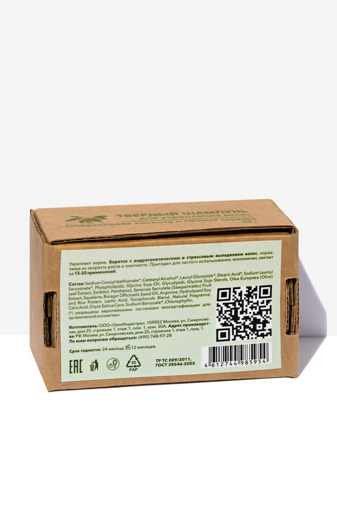 Твердый шампунь создан из мягких растительных ПАВ, разрешенных европейскими системами экосертификации для органической косметики. Не содержит сульфаты и силиконы. Не содержит консервантов. Деликатно о... Показать описаниечищает волосы без пересушивания, пригоден для частого применения. Активные компоненты укрепляют корни и борются с андрогенетическим и стрессовым выпадением волос. Способствуют увеличению количества волос в анагене (активной фазе роста). Нормализуют апоптоз клеток волосяного сосочка, удлиняя анаген. Нормализуют скорость роста и плотность волос. Олеаноловая кислота (олеуропеин) из оливы ускоряет переход волос в фазу анагена, усиливает деление клеток волосяного сосочка, на 50% блокирует превращение тестостерона в активную форму (DHT) в корнях волос. Стероидные сапонины из пальмы сереноа снижают концентрацию DHT в коже головы, ускоряя его превращение в слабоактивную форму и снижая повреждающее действие на корни волос. Способствует удлинению фазы анагена, нормализует скорость роста и плотность волос. Мембранно-липидный комплекс из сои в комбинации с оливковым скваланом смягчают и защищают волосы во время мытья, придавая блеск и эластичность. Способ применения: хорошо смочить волосы, вспенить шампунь на ладонях или проводя им по волосам, нанести сначала на прикорневую зону (избегая концов волос). Деликатно помассировать 1-2 минуты подушечками пальцев кожу головы, затем добавить воды, вспенить и распределить шампунь по длине волос. Тщательно прополоскать волосы, при необходимости повторить. Затем использовать привычный кондиционер или бальзам для волос. Внимание: возможна индивидуальная непереносимость компонентов. Следите, чтобы твердый шампунь полностью высыхал между использованиями. Примечание: молочная кислота получена из сахара-сырца и свекловичной мелассы сбраживанием молочнокислыми бактериями Lactobacillus delbrueclii, S. termophilus, S. Lactis. Состав: кокоил изетионат натрия* (Sodium Cocoyl Isethionate) цетеариловый спирт* (Cetearyl Alcohol) лаурил глюкозид* (Lauryl Glucoside) стеариновая кислота* (Stearic Acid) саркозинат натрия* (Sodium Lauroyl Sarcosinate) мембранно-липидный комплекс (Phospholipids, Glycine Soja Oil, Glycolipids, Glycine Soja Sterols) вода (Aqua) экстракт оливы (Olea Europaea (Olive) Leaf Extract) пребиотик сорбитол (Sorbitol) провитамин В5 (Panthenol) экстракт пальмы сереноа (Serenoa Serrulata (Sawpalmetto) Fruit Extract) оливковый сквалан (Squalane) масло бораго (Borago Officinalis Seed Oil) аргинин (Arginine) фитокератин (Hydrolyzed Soy and Rice Protein) кислота молочная (Lactic Acid) натуральный витамин Е (Tocopherols Blend) пищевой ароматизатор (Natural Fragrance) кислота лимонная (Citric Acid) воск рисовых отрубей (Oryza Sativa Cera) бензоат натрия* (Sodium Benzoate) натуральный хлорофиллин (Chlorophyllin). (*) разрешены европейскими системами экосертификации для органической косметики.