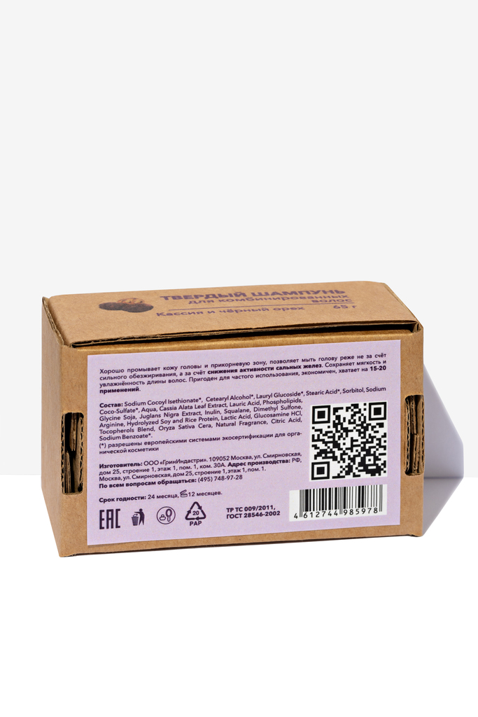 Твердый шампунь для комбинированных волос. Кассия и черный орех, 65 г НОВИНКАВопросы по товару
