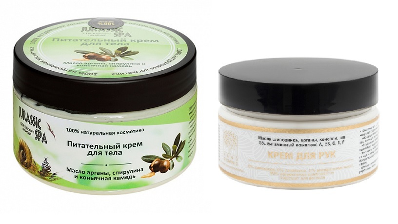1. Продукт Jurassic SPA - Эффективный крем для интенсивного ухода за сухой или раздраженной кожей тела, в том числе после загара. В отличие от стандартных кремов, которые увлажняют кожу за счет образо... Показать описаниевания пленки из силиконов и минеральных масел, этот 100% натуральный крем восстанавливает базальный слой кожи, обеспечивая ей природную защиту. - ценные растительные масла (конопля, карите, арганы и рисовых отрубей) интенсивно питают кожу, - спирулина, экстракты солодки, алоэ и пантенол снимают раздражения, - реликтовая соль и таурин стимулируют обновление клеток кожи, - коньячная камедь и натуральные пребиотики поддерживают полезную микрофлору кожи, восстанавливая ее естественную защиту. Способ применения: Нанести массирующими движениями на кожу тела, уделяя особое внимание сухим участкам. Состав: Вода очищенная, масла ши (карите), конопляное, кокосовое, рисовых отрубей, оливем (натуральный эмульгатор из оливкового масла), масло арганы, пантенол, пребиотики (лактитол, изомальт, сорбитол), экстракт гарцинии, экстракт алоэ, экстракт солодки, лечебная соль, таурин, коньячная камедь, композиция эфирных масел, молочная кислота, спирулина, шаромикс. 2. Продукт Nano Organic - Витамин Ф 3%, 10 масел, без силиконов и минеральных масел Комплекс вит. A, B5, C, E, F (5%) замедляют старение кожи рук и тела масла шиповника, арганы, конопли, ши, авокадо интенсивно питают натуральный пребиотик (2%) восстанавливает защитный барьер экстракты муира-пуамы, курильского чая и хвоща повышают упругость и предотвращают возрастную пигментацию ценные минералы морской рапы (2%) укрепляют ногти.