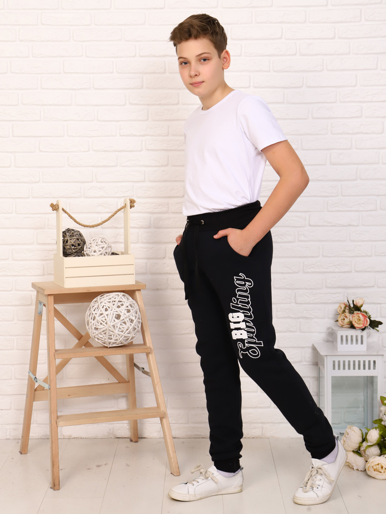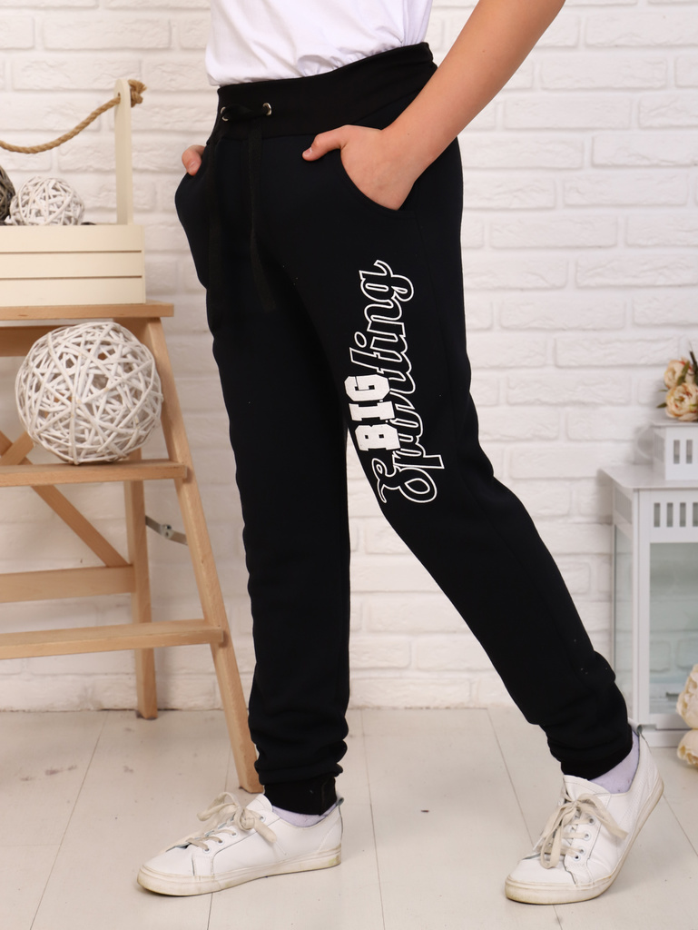 Цвет: черный.Состав: хлопок 72%, п,э, 20%, лайкра 8%.Материал: футер двухнитка.Сезонность: Осень-зима Подростковые брюки для мальчиков. Детские штаны сшиты из трикотажа с хлопком с карманы в боковых ш... Показать описаниевах. Модель штанов прямого кроя, с принтом, поясом на резинке, с отделкой регулировочным шнурком, удобная посадка на талии. Спортивкив сочетание с футболкой, майкой, водолазкой, лонгсливом, толстовкой, олимпийкой, свитшотом, легким худи подойдут для школы, занятий спортом, секций, кружков, путешествий, походов, экскурсий, туризма, тренировок, бега, повседневных прогулок, дома, отдыха, для подарка. Будем рады, если Вы оставите отзыв о наших моделях одежды. Учтём Ваши пожелания!