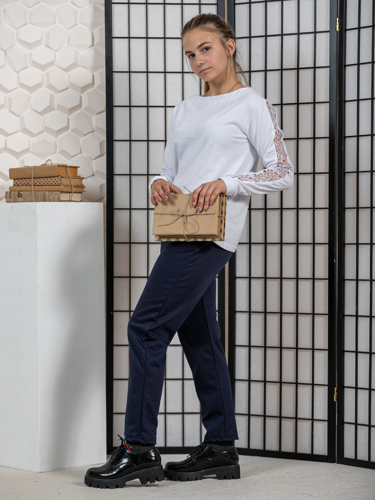 Цвет: синий.Состав: пэ100%.Материал: милано.Сезонность: Осень-зима Брюки для девочки-подростка однотонные. Подростковые штаны в классическом стиле, прямого кроя, с карманами в боковых швах. Высокая та... Показать описаниелия с поясом на резинке, обеспечивает удобную посадку и создает модный силуэт. Брюки-один из самых главных элементов в гардеробе. Отлично подойдут для делового и повседневного образа. Детские брючки можно сочетать с футболкой, блузкой, лонгсливом, водолазкой, жилетом, джемпером, кофтой, кардиганом, толстовкой, свитшотом, худи. Джоггеры подойдут для прогулок, праздников, вечеринок, похода в гости, экскурсий, школы, кружков, для подарка. Будем рады, если Вы оставите отзывы о наших моделях одежды. Учтём Ваши пожелания!