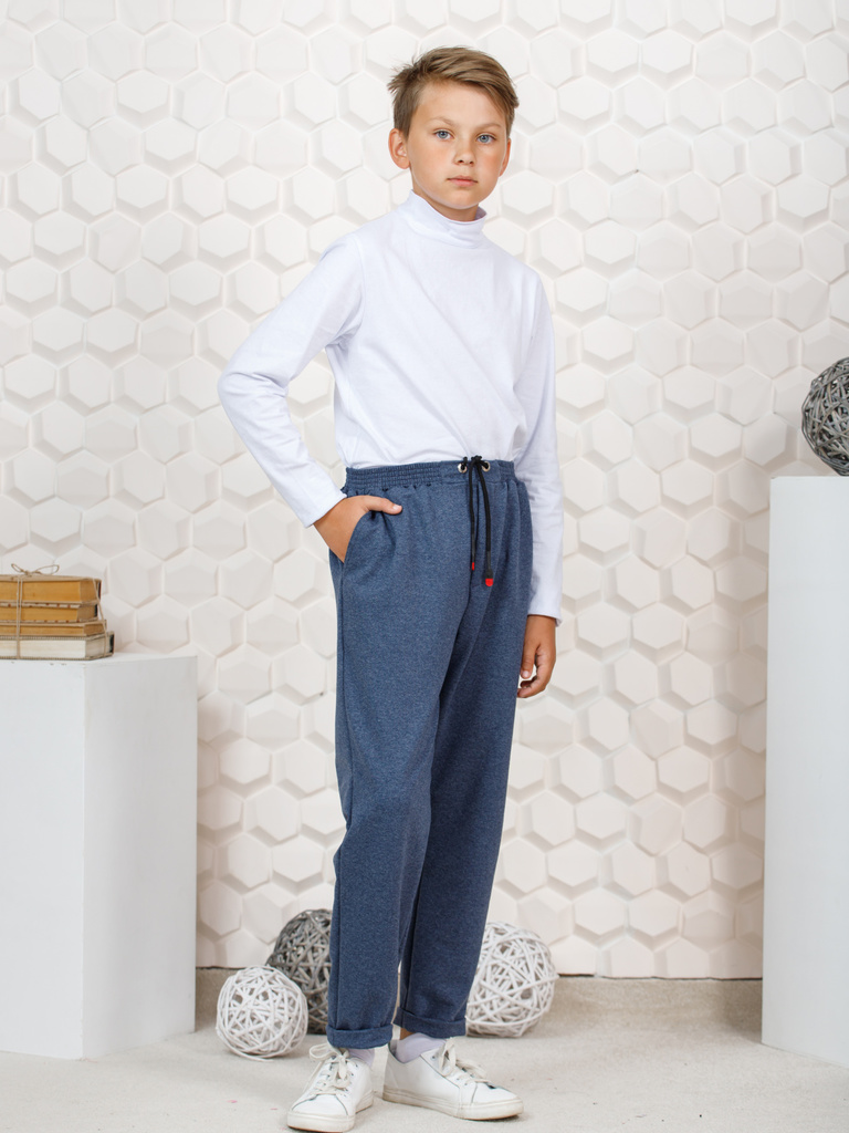 Цвет: синий меланж.Состав: 59%хлопок, 36%п/э, 5%лайкра.Сезонность: Осень-зима Брюки для мальчиков-подростков. Классические штаны сшиты из хлопкового футера с лайкрой. Модель свободного кроя, зауженная... Показать описание к низу с загибом, стандартная посадка, есть карманы в боковых швах. На поясе предусмотрена дополнительная регулировка шнурком. Спортивки в сочетание с футболкой, майкой, водолазкой, лонгсливом, толстовкой, олимпийкой, свитшотом, легким худи подойдут для школы, занятий спортом, секций, кружков, путешествий, походов, экскурсий, туризма, тренировок, бега, повседневных прогулок, дома, отдыха, для подарка. Будем рады, если Вы оставите отзывы о наших моделях одежды. Учтём Ваши пожелания!
