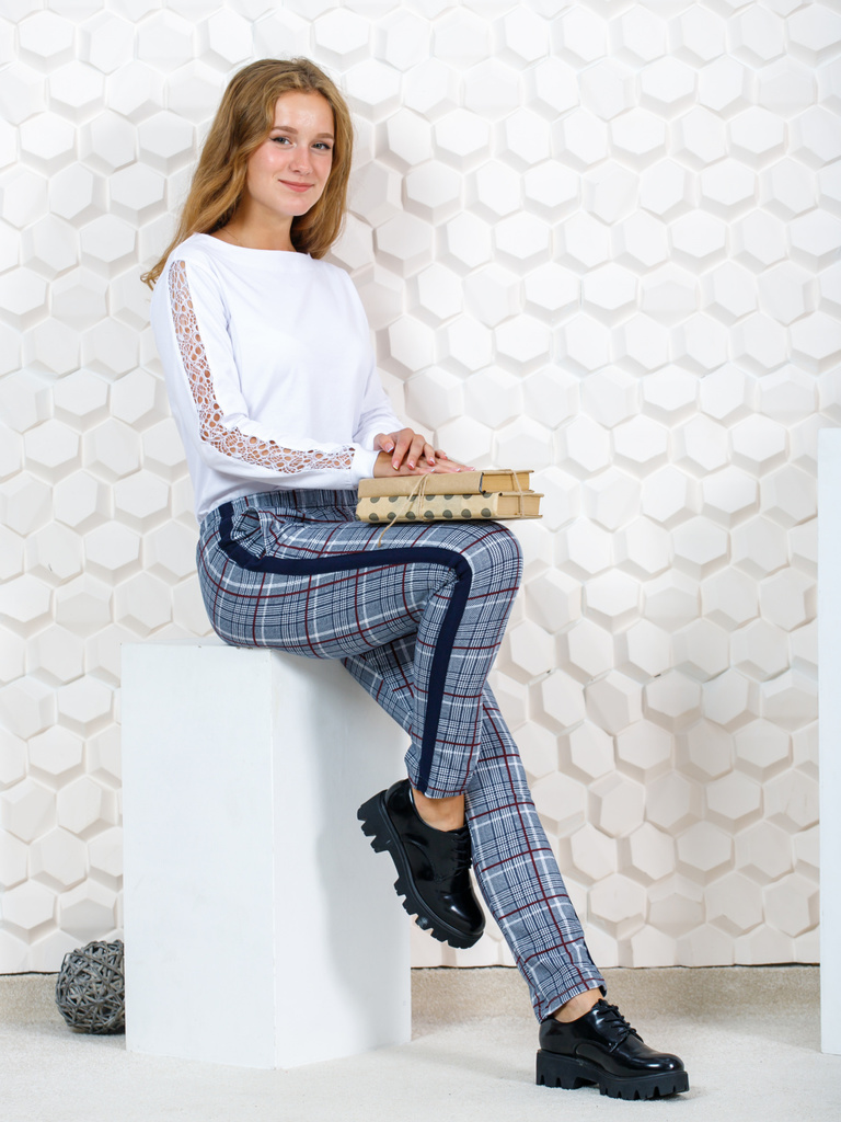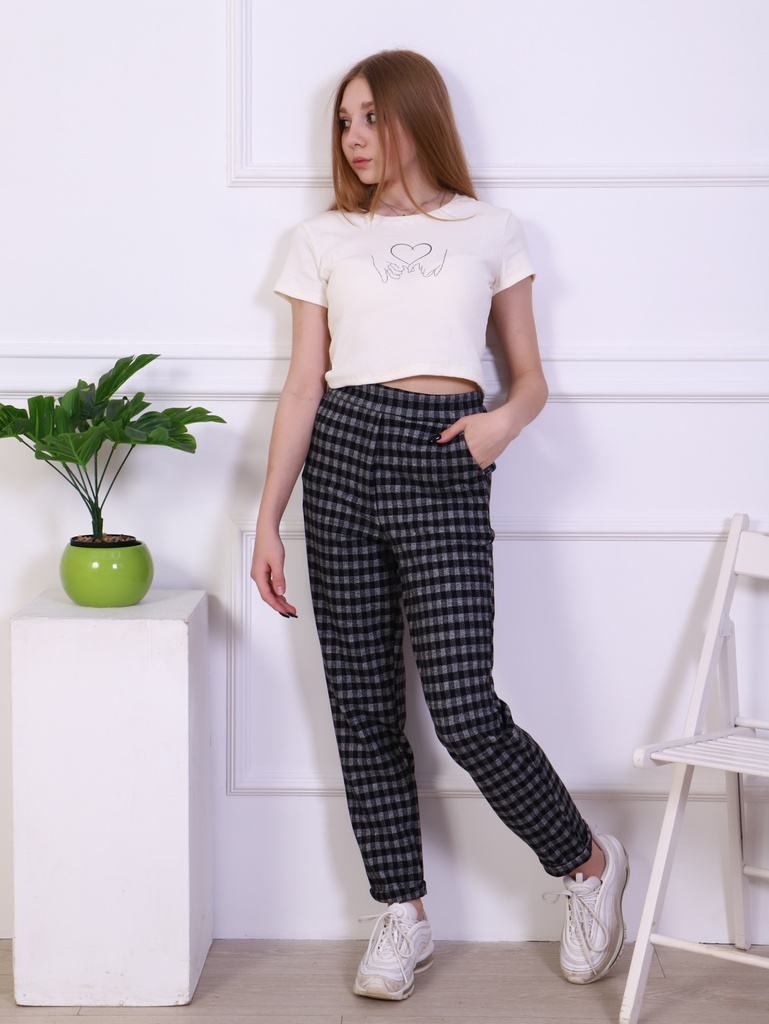 Состав: п/э 75%, вискоза 20%, лайкра 5%.Сезонность: Осень-зима Брюки для девочки-подростка в клетку. Подростковые штаны сшиты из приятной, трикотажной, костюмной, эластичной ткани с добавлением лайкры... Показать описание. Классическоий стиль брючек, прямой крой, зауженные к низу. Длина детских штанишек немного укорочена, с лампасами и карманами в боковых швах. Высокая талия с поясом на резинке, обеспечивает удобную посадку и создает модный стиль. Отлично подойдут для делового и повседневного образа. Молодежные брючки можно сочетать с футболкой, блузкой, лонгсливом, водолазкой, жилетом, джемпером, кофтой, кардиганом, толстовкой, свитшотом, худи. Джоггеры подойдут для прогулок, праздников, вечеринок, похода в гости, экскурсий, школы, кружков, для подарка. Будем рады, если Вы оставите отзывы о наших моделях одежды. Учтём Ваши пожелания!