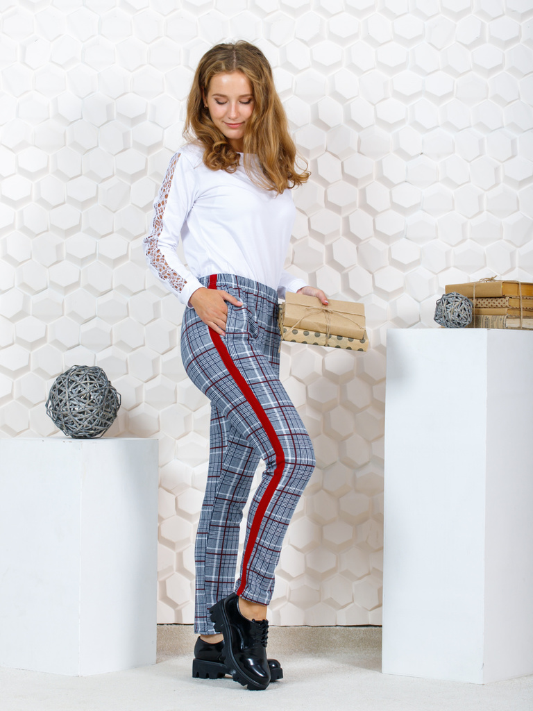 Цвет: красный.Состав: хлопок 72%, п,э, 20%, лайкра 8%.Сезонность: Осень-зима Брюки для девочки-подростка в клетку. Подростковые штаны сшиты из приятной, трикотажной, костюмной, эластичной ткани с доба... Показать описаниевлением лайкры. Классическоий стиль брючек, прямой крой, зауженные к низу. Длина детских штанишек немного укорочена, с лампасами и карманами в боковых швах. Высокая талия с поясом на резинке, обеспечивает удобную посадку и создает модный стиль. Отлично подойдут для делового и повседневного образа. Молодежные брючки можно сочетать с футболкой, блузкой, лонгсливом, водолазкой, жилетом, джемпером, кофтой, кардиганом, толстовкой, свитшотом, худи. Джоггеры подойдут для прогулок, праздников, вечеринок, похода в гости, экскурсий, школы, кружков, для подарка. Будем рады, если Вы оставите отзывы о наших моделях одежды. Учтём Ваши пожелания!