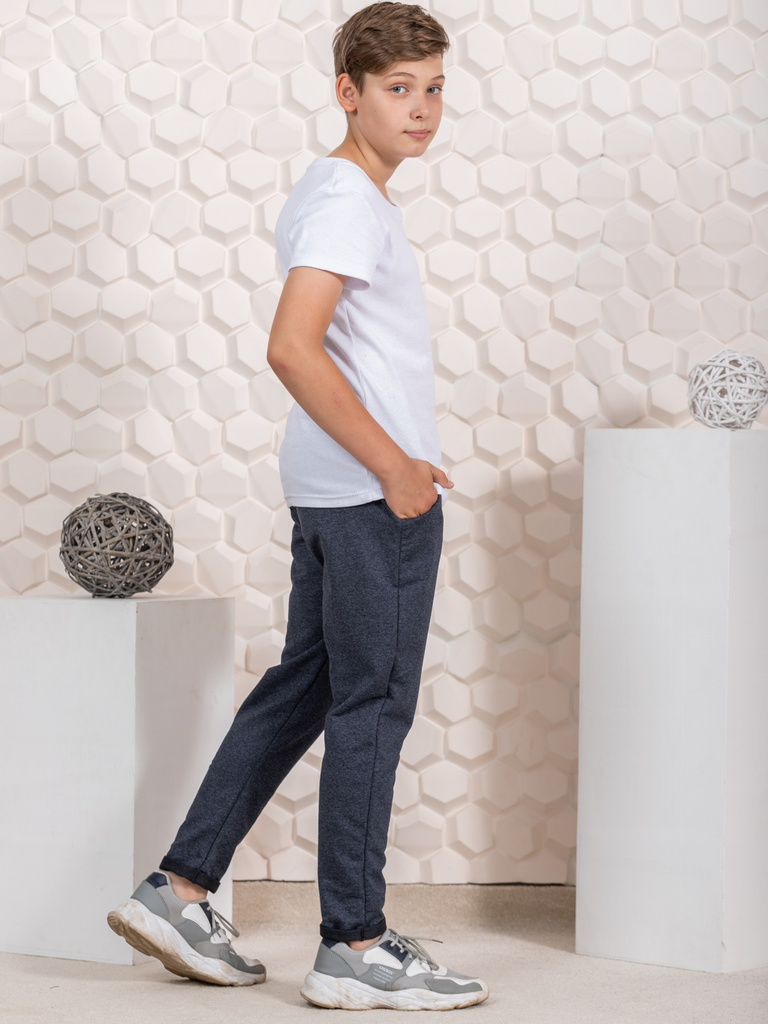 Цвет: синий.Состав: 98% хлопок 2% эластан.Материал: Джинсовый трикотаж.Сезонность: Осень-зима Брюки для мальчиков-подростков. Брюки чинос – олицетворение удобства, комфорта и практичности. Чинос – оди... Показать описаниен из немногих видов брюк, которые удобны, и позволяют сочетать с собой одежду разных стилей. Детские штанишки сшиты из джинсового трикотажа с хлопком, прямого кроя, с карманами в боковых швах. Исходя из этого стоит подчеркнуть, что данную модель можно отлично сочетать с классической рубашкой, пиджаком, жилетом, свитером, что создат стильный образ в школу. Так же эту модель можно сочетать с любой толстовкой, футболкой и будет удобный образ для прогулки, экскурсии, торжественного мероприятия, встречи, праздника, для подарка. Модель представлена в 2-х цветах: черный и синий. Будем рады, если Вы оставите отзыв о наших моделях одежды. Учтём Ваши пожелания!
