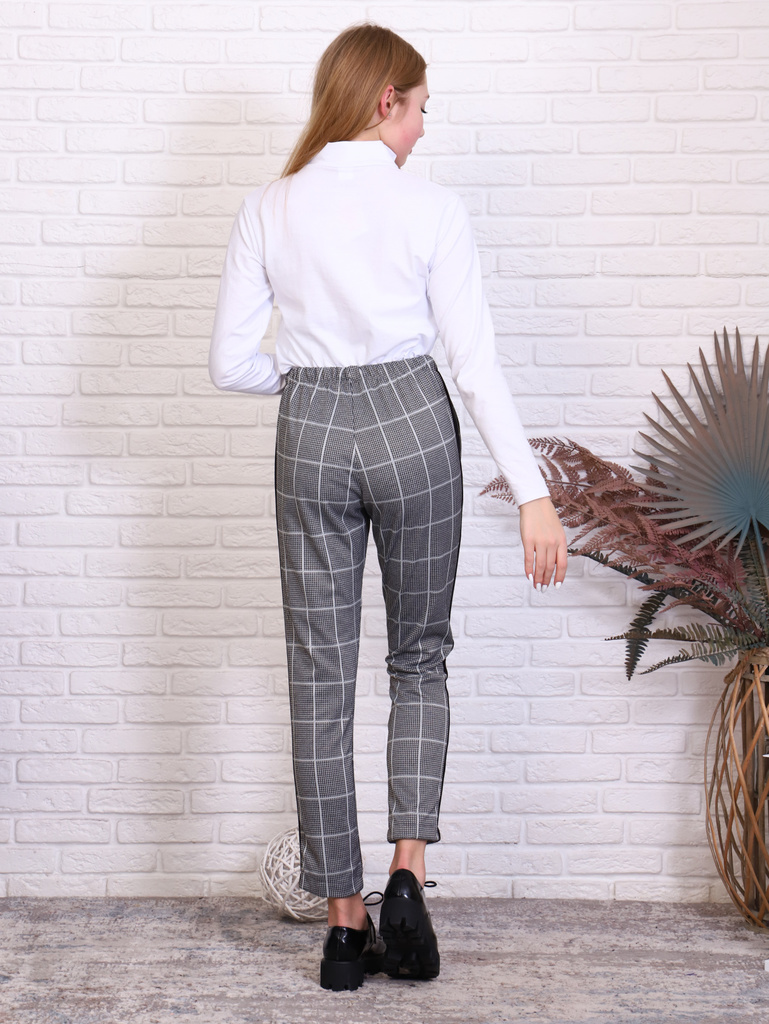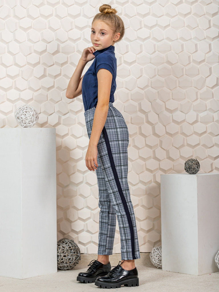Цвет: серый.Состав: п/э 75%, вискоза 20%, лайкра 5%.Материал: трикотажное полотно.Сезонность: Осень-зима Брюки для девочки-подростка в клетку. Подростковые штаны в классическом стиле, прямого кроя, за... Показать описаниеуженные к низу, длина немного укорочена, с подгибом, с карманами в боковых швах. Высокая талия с поясом на резинке, обеспечивает удобную посадку и создает модный силуэт. Сшиты из трикотажной ткани с добавлением лайкры. Отлично подойдут для делового и повседневного образа. Детские брючки можно сочетать с футболкой, блузкой, лонгсливом, водолазкой, жилетом, джемпером, кофтой, кардиганом, толстовкой, свитшотом, худи. Джоггеры подойдут для прогулок, праздников, вечеринок, похода в гости, экскурсий, школы, кружков, для подарка. Будем рады, если Вы оставите отзыв о наших моделях одежды. Учтём Ваши пожелания!