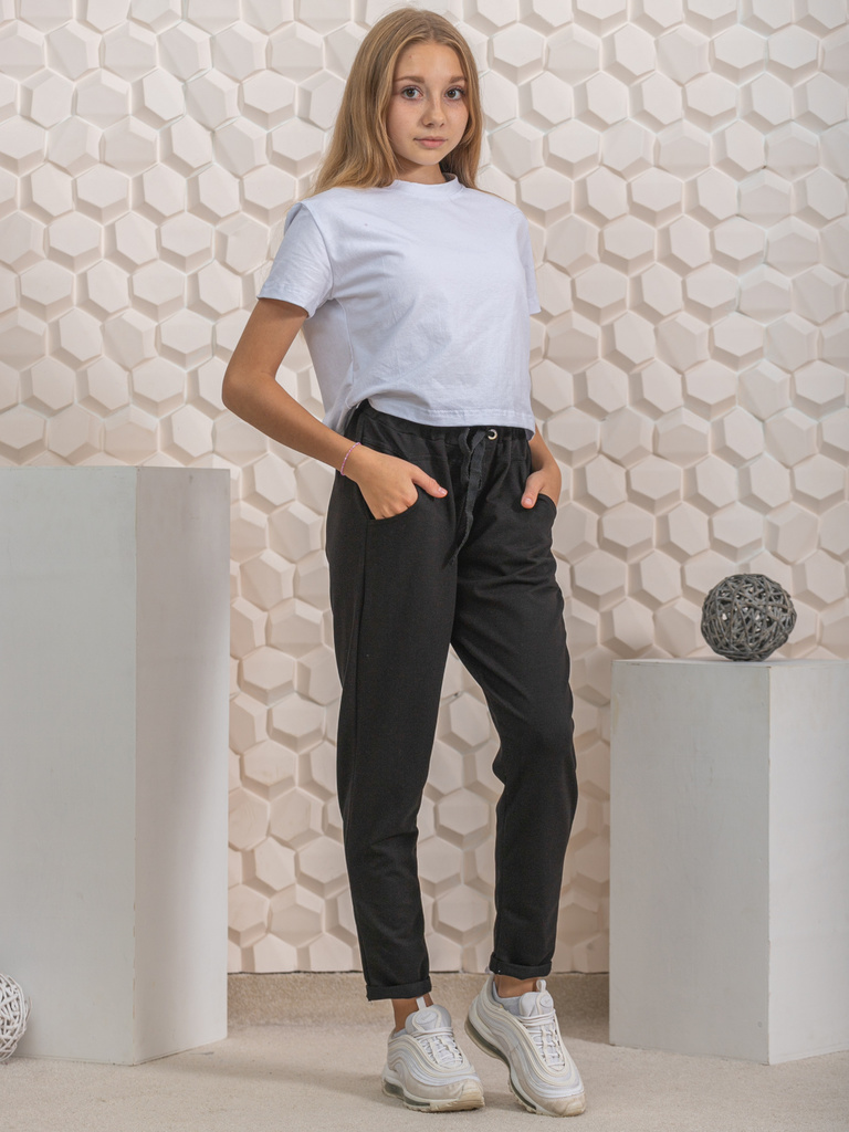 Цвет: черный.Состав: пэ100%.Материал: милано.Сезонность: Осень-зима Брюки для девочки-подростка однотонные. Подростковые штаны в классическом стиле, прямого кроя, с карманами в боковых швах. Высокая т... Показать описаниеалия с поясом на резинке, обеспечивает удобную посадку и создает модный силуэт. Брюки-один из самых главных элементов в гардеробе. Отлично подойдут для делового и повседневного образа. Детские брючки можно сочетать с футболкой, блузкой, лонгсливом, водолазкой, жилетом, джемпером, кофтой, кардиганом, толстовкой, свитшотом, худи. Джоггеры подойдут для прогулок, праздников, вечеринок, похода в гости, экскурсий, школы, кружков, для подарка. Будем рады, если Вы оставите отзывы о наших моделях одежды. Учтём Ваши пожелания!
