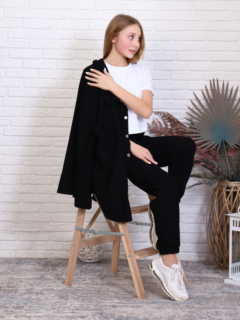 Цвет: черный.Состав: хлопок 72%, 20%п/э,8%лайкра.Материал: футер с лайкрой.Сезонность: Осень-зима Брюки для девочки-подростка однотонные. Подростковые штаны сшиты из трикотажа с хлопком в классическом... Показать описание стиле, прямого кроя, с карманами в боковых швах. Детские штанишки с высокой талией, эластичным поясом на резинке, обеспечивает удобную посадку и создает модный силуэт. Стильные и удобные брюки из трикотажного полотна. Данная модель подходит для повседневного использования. Классические брюки зауженные к низу со стрелкой. Брюки-один из самых главных элементов в гардеробе. Отлично подойдут для делового и повседневного образа. Брючки для детей можно сочетать с футболкой, блузкой, лонгсливом, водолазкой, жилетом, джемпером, кофтой, кардиганом, толстовкой, свитшотом, худи. Джоггеры подойдут для прогулок, праздников, вечеринок, похода в гости, экскурсий, школы, кружков, для подарка. Будем рады, если Вы оставите отзывы о наших моделях одежды. Учтём Ваши пожелания!