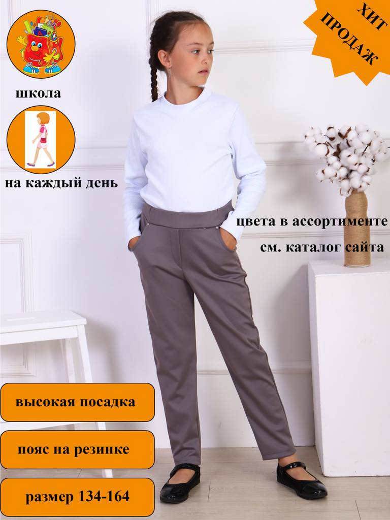Цвет: серый.Состав: полиэстер 100%.Материал: милано Брюки для девочки-подростка однотонные. Подростковые штаны в классическом стиле, прямого кроя, с карманами в боковых швах. Высокая талия с поясом на... Показать описание резинке, обеспечивает удобную посадку и создает модный силуэт. Брюки-один из самых главных элементов в гардеробе. Отлично подойдут для делового и повседневного образа. Детские брючки можно сочетать с футболкой, блузкой, лонгсливом, водолазкой, жилетом, джемпером, кофтой, кардиганом, толстовкой, свитшотом, худи. Джоггеры подойдут для прогулок, праздников, вечеринок, похода в гости, экскурсий, школы, кружков, для подарка. Будем рады, если Вы оставите отзывы о наших моделях одежды. Учтём Ваши пожелания!