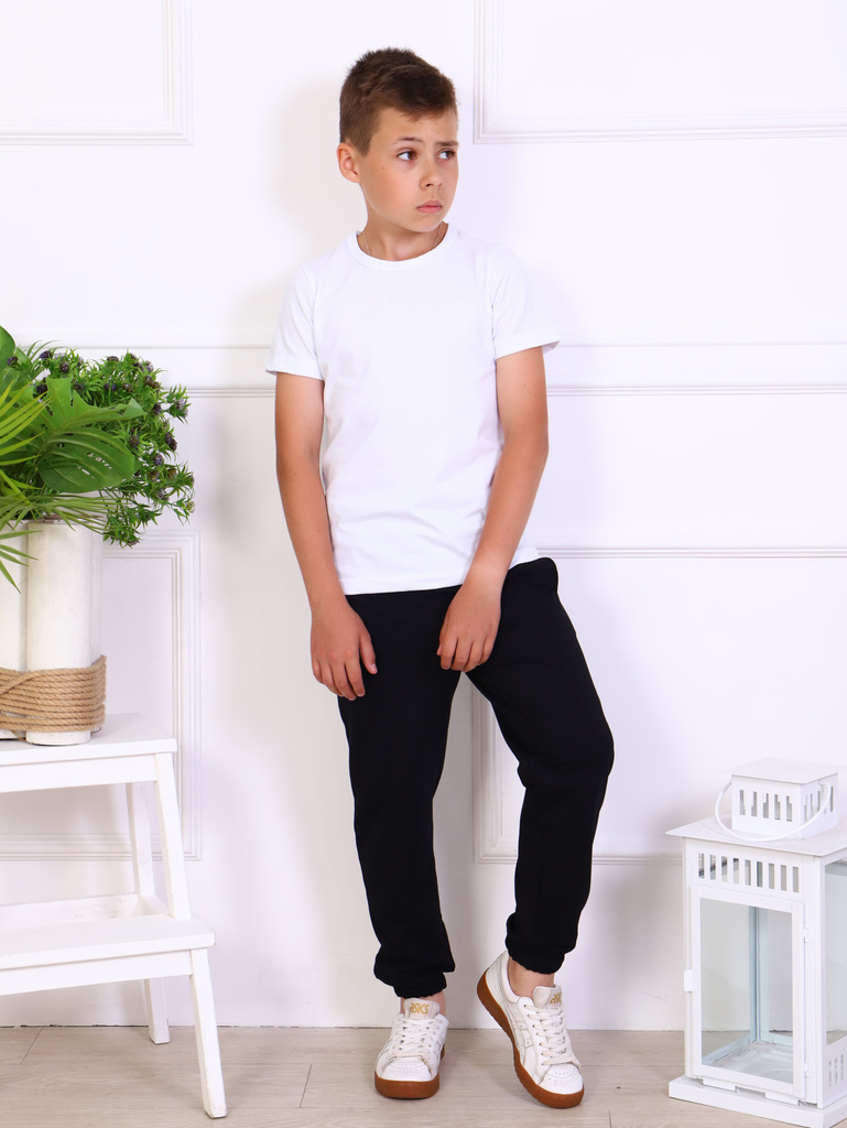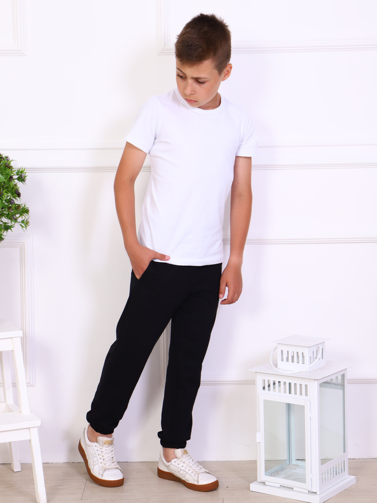Цвет: черный матовый.Состав: 72% хлопок,20% полиэстер,8% лайкра.Сезонность: Осень-зима Подростковые брюки для мальчиков. Однотонные детские штаны сшиты из трикотажа с хлопком с карманы в боковых швах,... Показать описание внизу брючин манжеты. Модель штанов прямого кроя, с поясом на резинке, удобная посадка на талии. Спортивки в сочетание с футболкой, майкой, водолазкой, лонгсливом, толстовкой, олимпийкой, свитшотом, легким худи подойдут для школы, занятий спортом, секций, кружков, путешествий, походов, экскурсий, туризма, тренировок, бега, повседневных прогулок, дома, отдыха, для подарка. Будем рады, если Вы оставите отзывы о наших моделях одежды. Учтём Ваши пожелания!