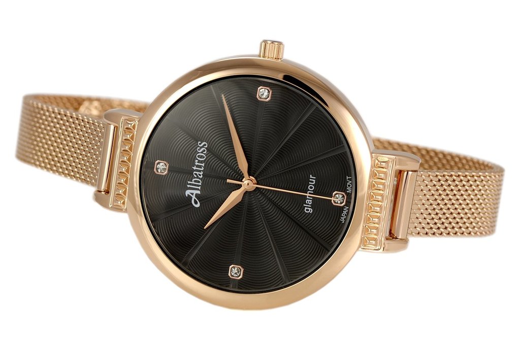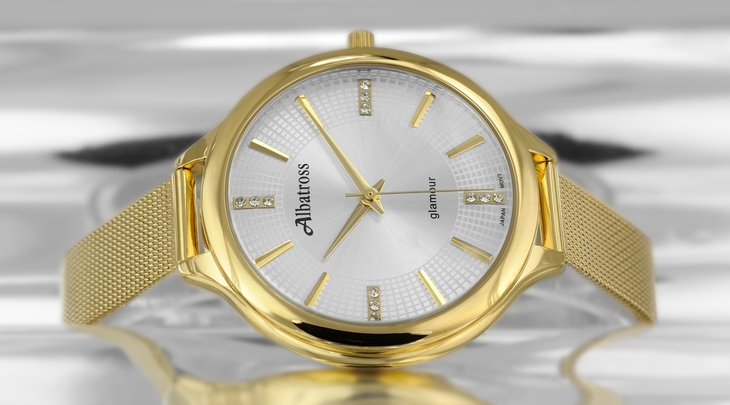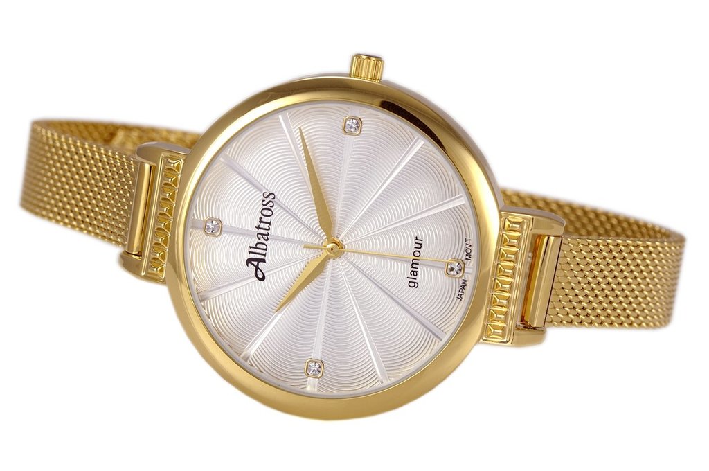Женские часы ALBATROSS. Модель ABAC11. Механизм: кварцевый механизм MIYOTA 626SW. Материал корпуса: стальной корпус с напылением по технологии HQ PLATING IPG. Размеры корпуса: шир... Показать описаниеина 36 мм, высота 36 мм, толщина 8,5 мм. Циферблат: гильошированый. Ремешок: ремешок, ширина 18-16 мм. Застежка: классическая. Стекло: минеральное, устойчивое к царапинам. Функции: часы, минуты, секунды. Вес: 31 гр. Производство: фирма ALBATROSS. Цвет как на фото.