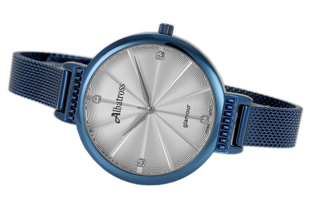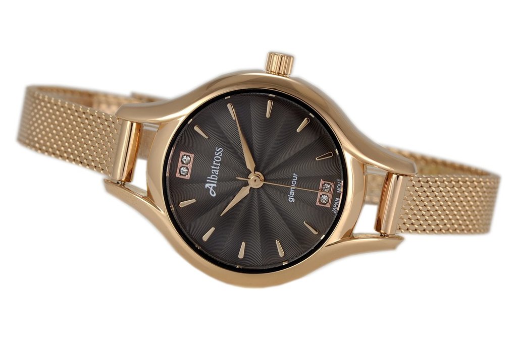 Женские часы ALBATROSS. Модель ABAB05. Механизм: кварцевый механизм MIYOTA 626SW. Материал корпуса: стальной корпус с напылением по технологии HQ PLATING IPG. Размеры корпуса: шир... Показать описаниеина 37,7 мм, высота 37,7 мм, толщина 9 мм. Циферблат: гильошированый. Ремешок: ремешок, ширина 18-16 мм. Застежка: классическая. Стекло: минеральное, устойчивое к царапинам. Функции: часы, минуты, секунды. Вес: 35,6 гр. Производство: фирма ALBATROSS. Цвет как на фото.