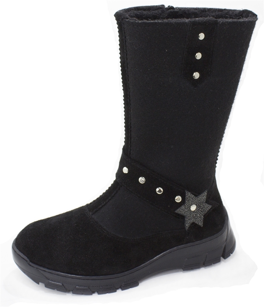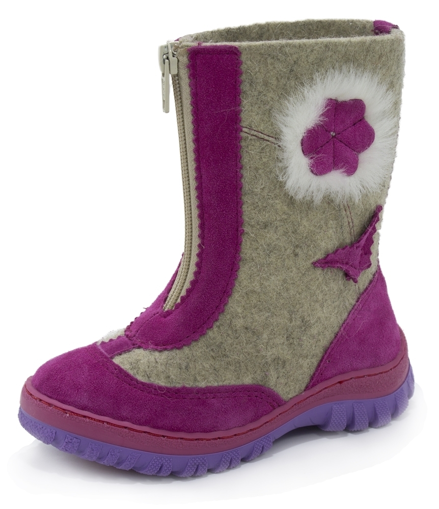 Сапожки детские "Аленка" - повседневная зимняя детская обувь, изготовленная из натурального тонкошерстного натурального войлока (100% овечья шерсть). В передней части сапожек под застежкой молнией име... Показать описаниеется защитный внутренний клапан. Модель декорирована натуральной кожей - спилок-велюром. Обувь снабжена дополнительным теплоизолирующим слоем - вкладной стелькой из войлока, которая минимизирует тепловые потери через подошву, тем самым сохранит ноги в тепле. Подошва с рельефным протектором обеспечит надежное сцепление при ходьбе. При покупке правильно подбирайте обувь по размеру, полноте, фасону, учитывайте индивидуальные особенности стопы. Длина по стельке, мм.: 23-155, 24-160, 25-165, 26-175, 27-183, 28-188, 29-195, 30-200, 31-205, 32-212.