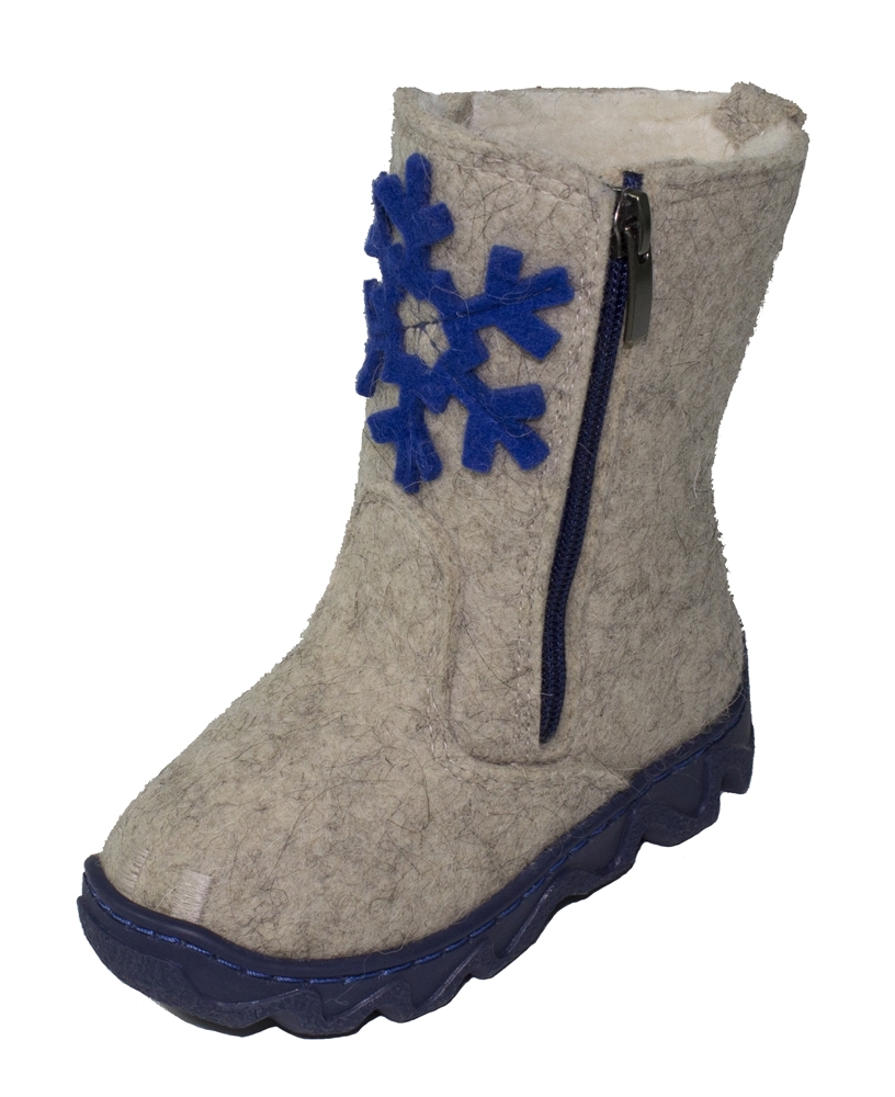 Сапожки детские "Снежок" - повседневная зимняя детская обувь, изготовленная из натурального тонкошерстного натурального войлока (100% овечья шерсть). В передней части сапожек под застежкой молнией име... Показать описаниеется защитный внутренний клапан. Модель декорирована натуральной кожей - спилок-велюром. Обувь снабжена дополнительным теплоизолирующим слоем - вкладной стелькой из войлока, которая минимизирует тепловые потери через подошву, тем самым сохранит ноги в тепле. Подошва с рельефным протектором обеспечит надежное сцепление при ходьбе. При покупке правильно подбирайте обувь по размеру, полноте, фасону, учитывайте индивидуальные особенности стопы.
