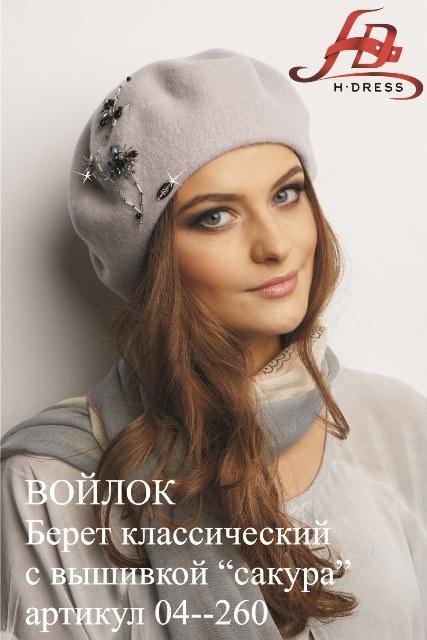 Классический берет с вышивкой "сакура".